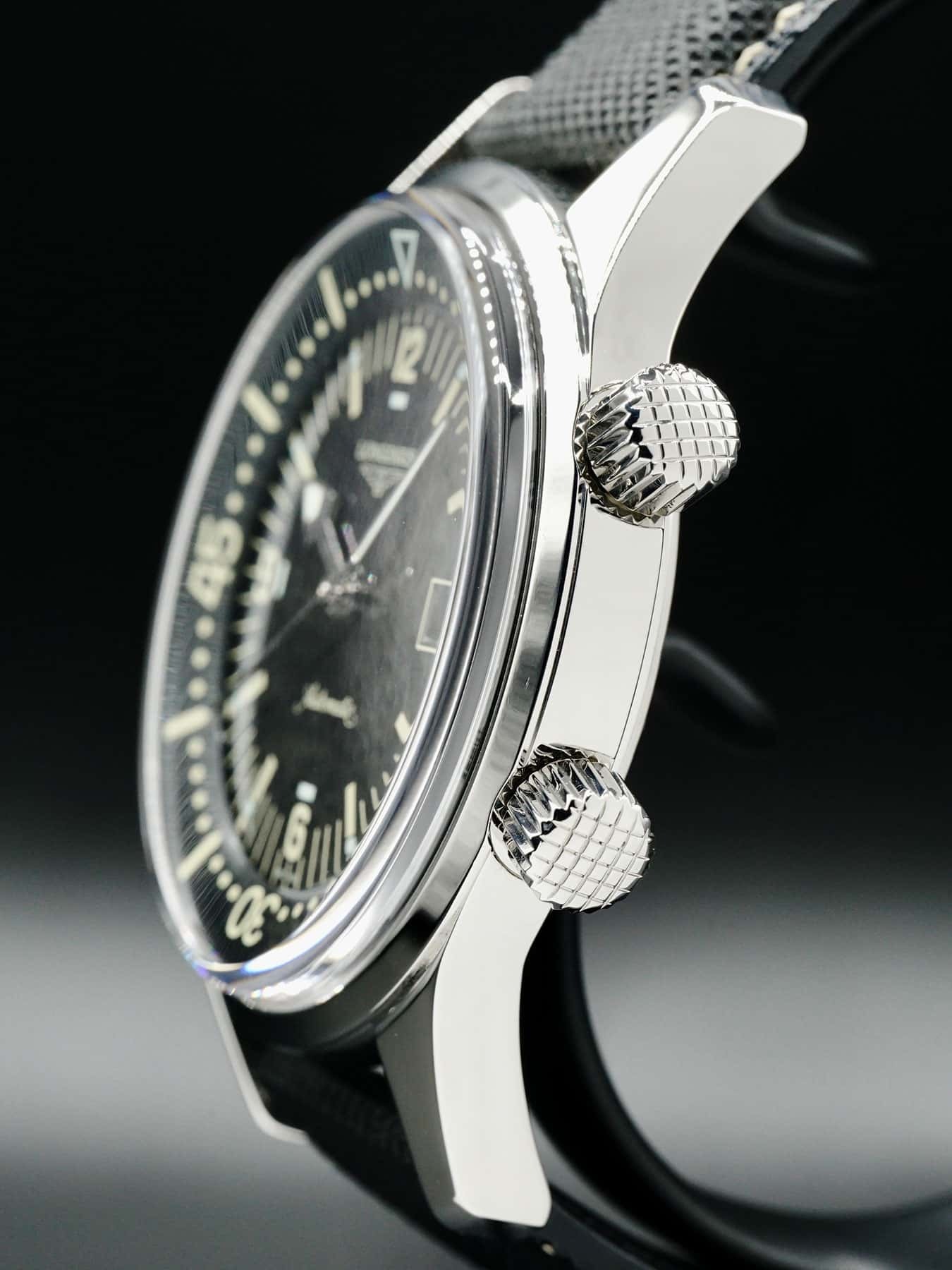 This Longines Legend Diver on Strap L3.674.4.50.0 is in EXCELLENT condition. This watch includes a small travel case only.