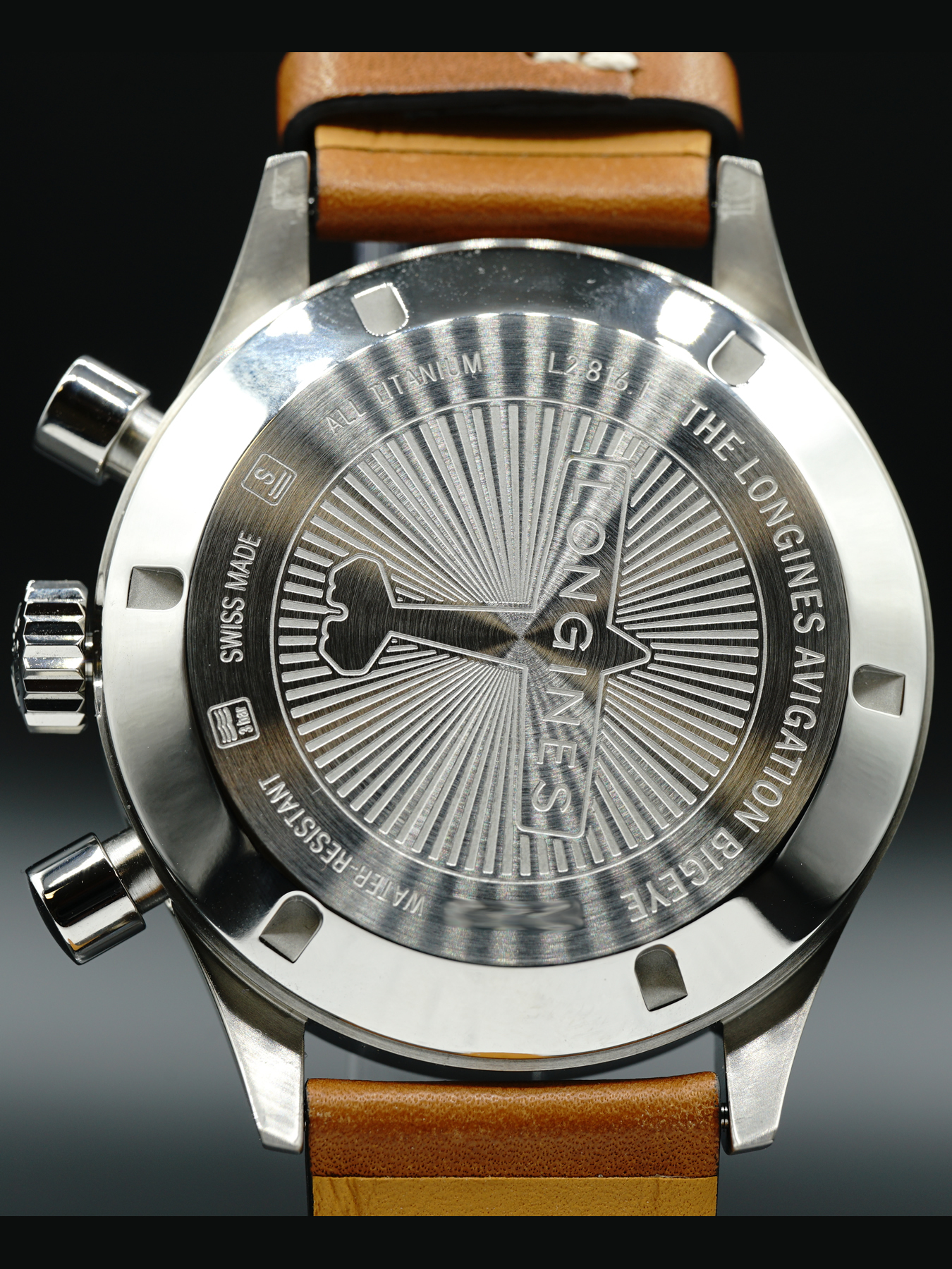 This Longines Avigation BigEye is in EXCELLENT condition. This watch features a titanium case with a petrol blue dial. This watch is driven by an exclusive chronograph movement fitted with a silicon balance spring. This watch includes its original box, papers, and has a warranty card dated August 2021.