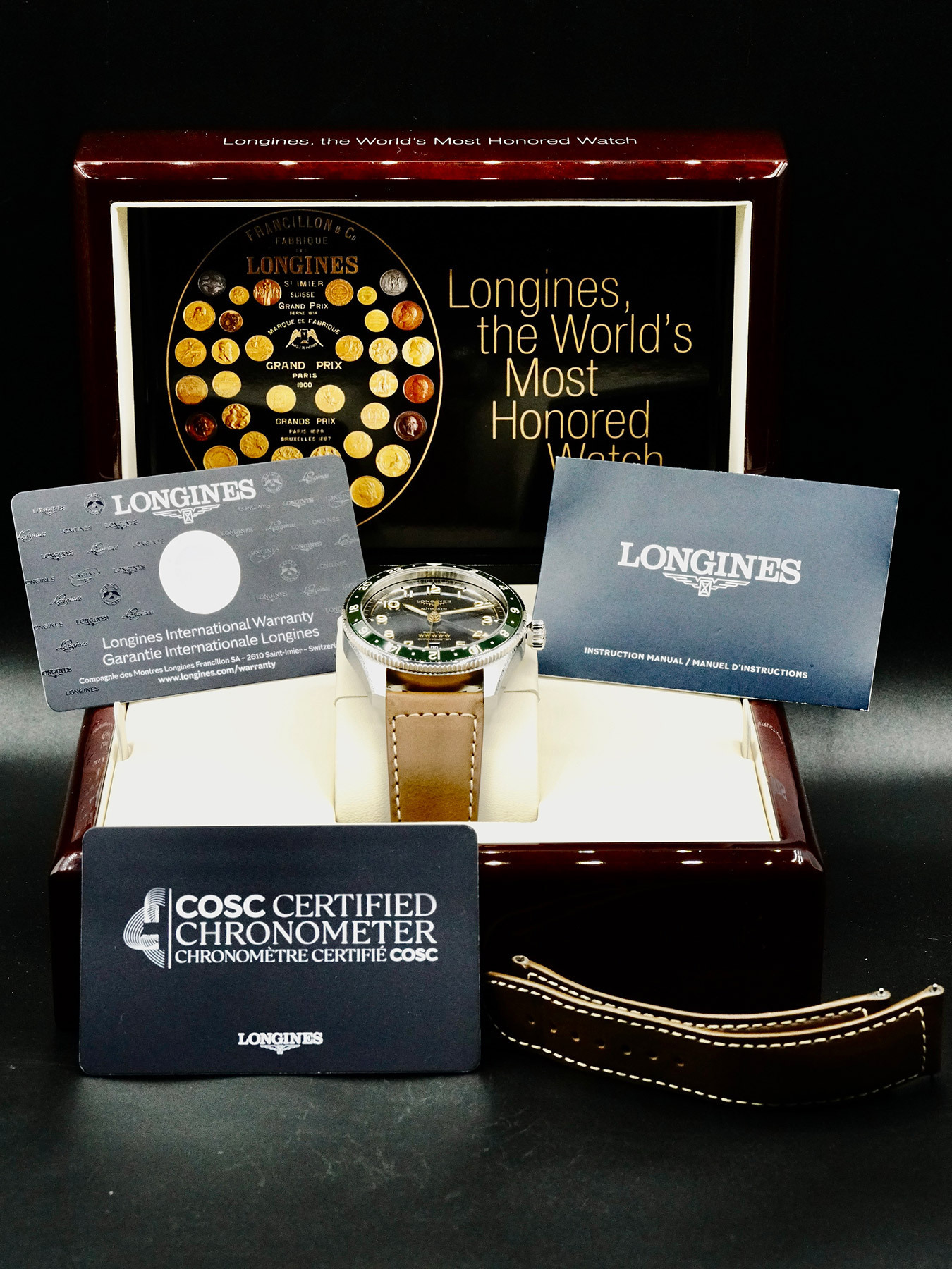 This Longines Spirit Zulu Time L3.812.4.63.2 is in EXCELLENT condition. This watch includes its original box, instruction manual, and international warranty dated for July 2022. Extra brown leather strap.