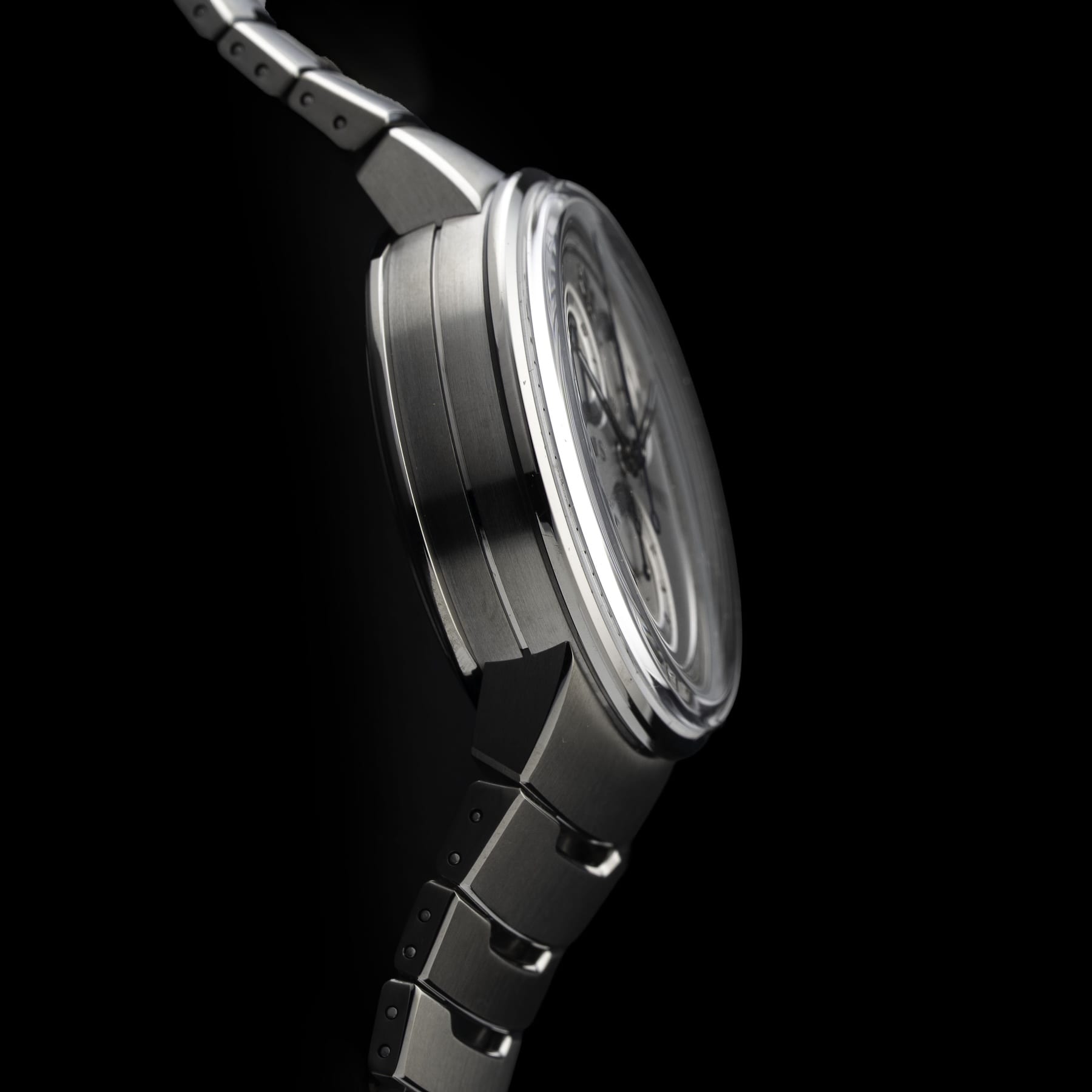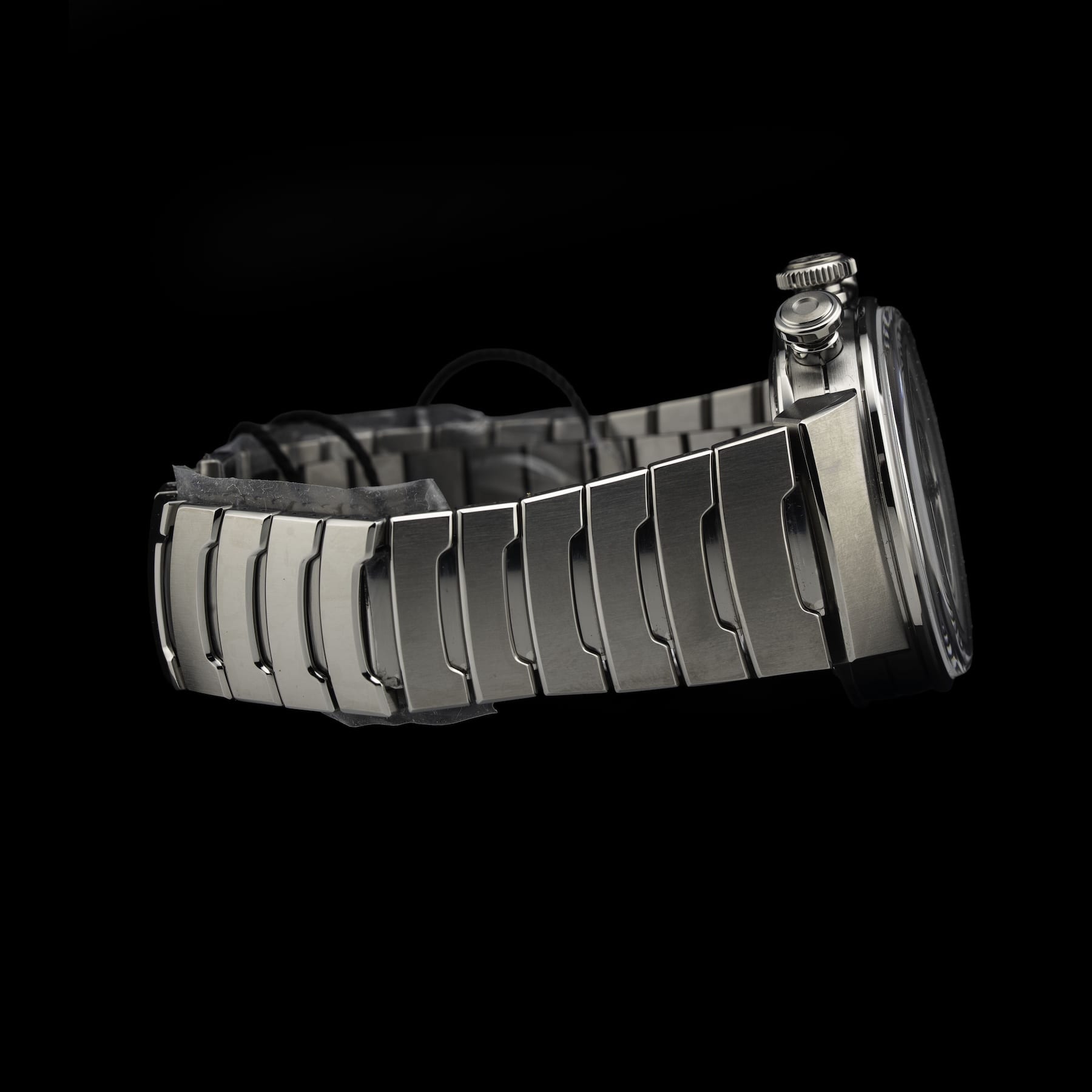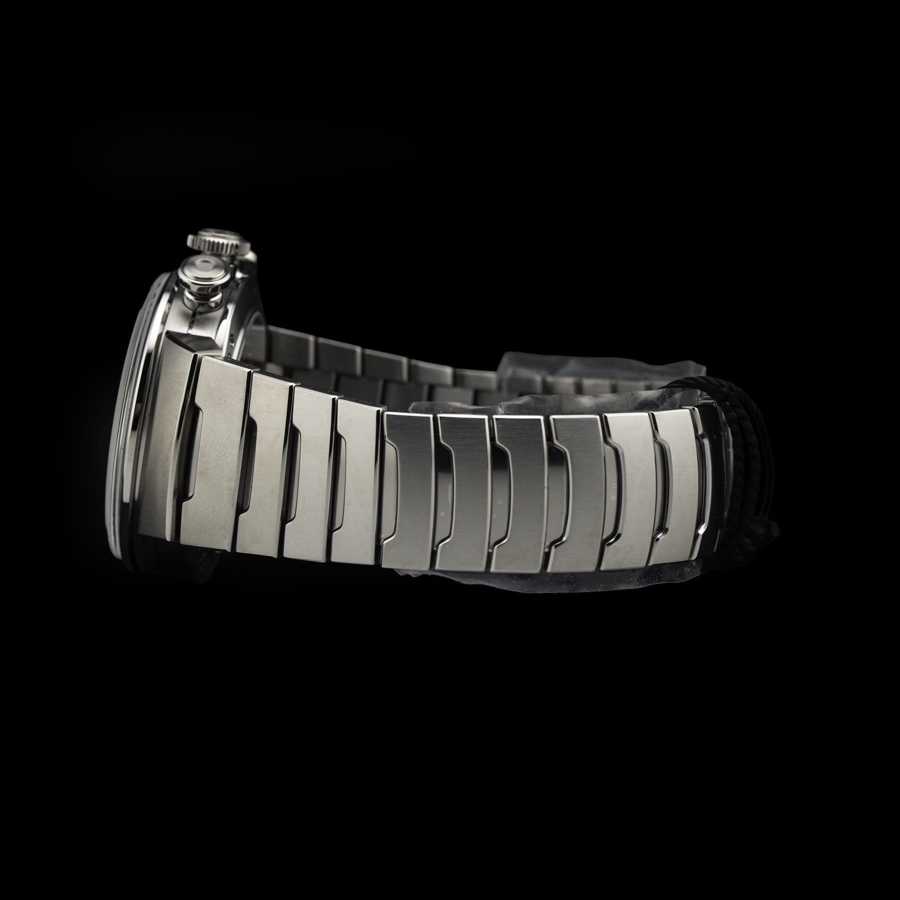 - This timepiece features a 40mm titanium case paired with a high quality titanium bracelet. It showcases a distinctive silver dial and is powered by a precise manual winding movement. The watch is designed with a water resistance of up to 30m.