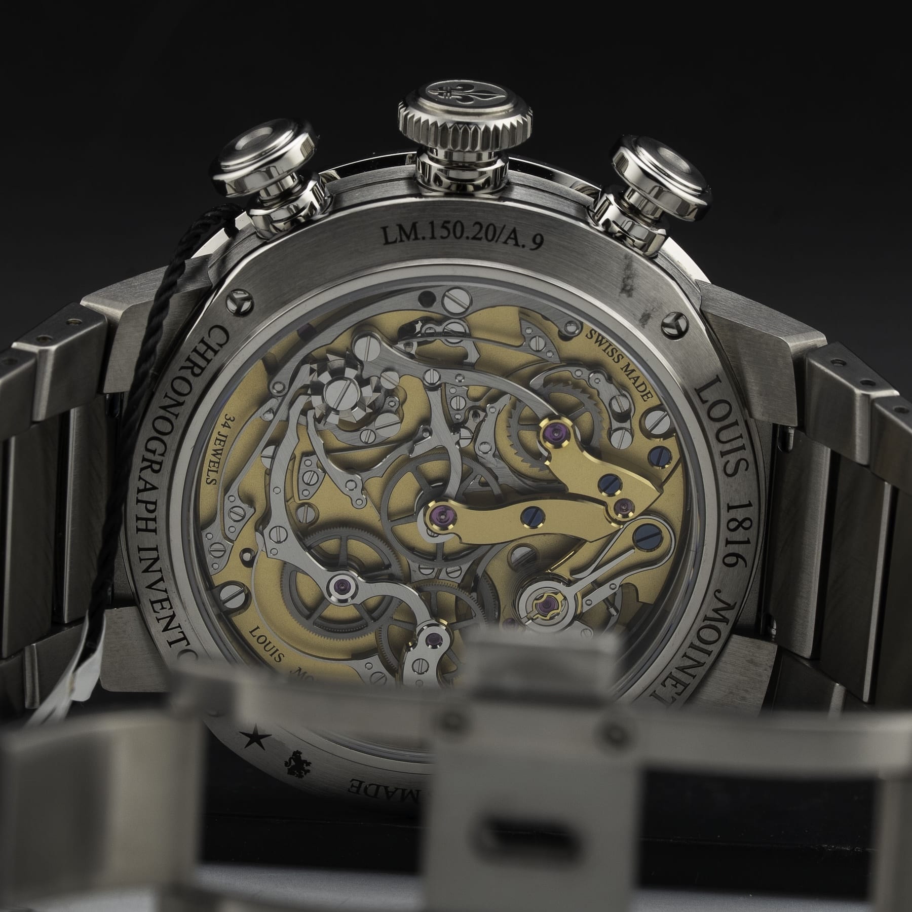This Louis Moinet 1816 LM-150.20.60 is in GREAT condition. This watch includes its Original Box, Original Papers and warranty card. This watch has been fully authenticated and certified by Exquisite Timepieces. Please note, the photos shown are of the actual watch you will receive.
