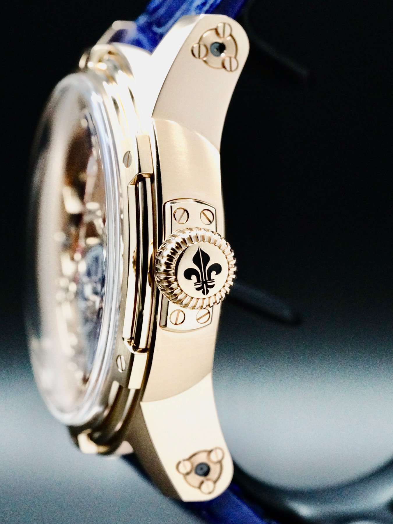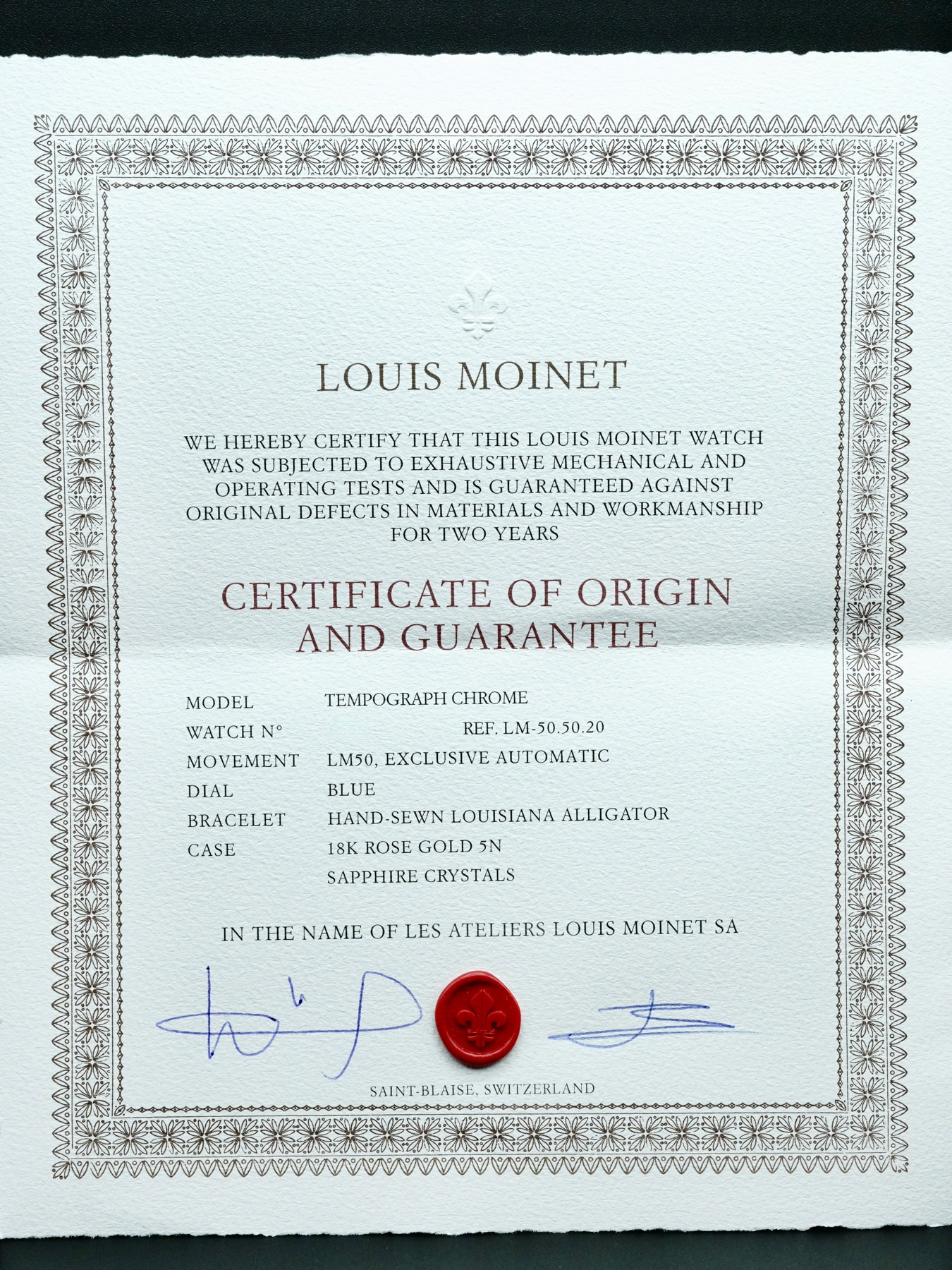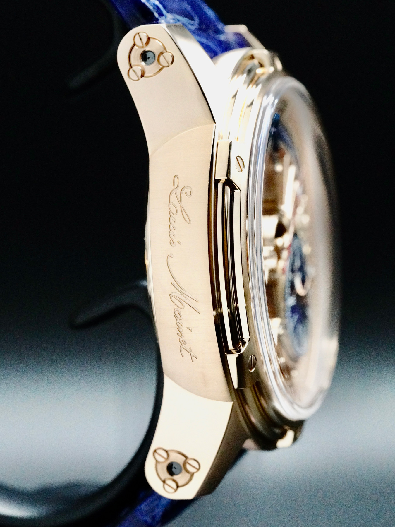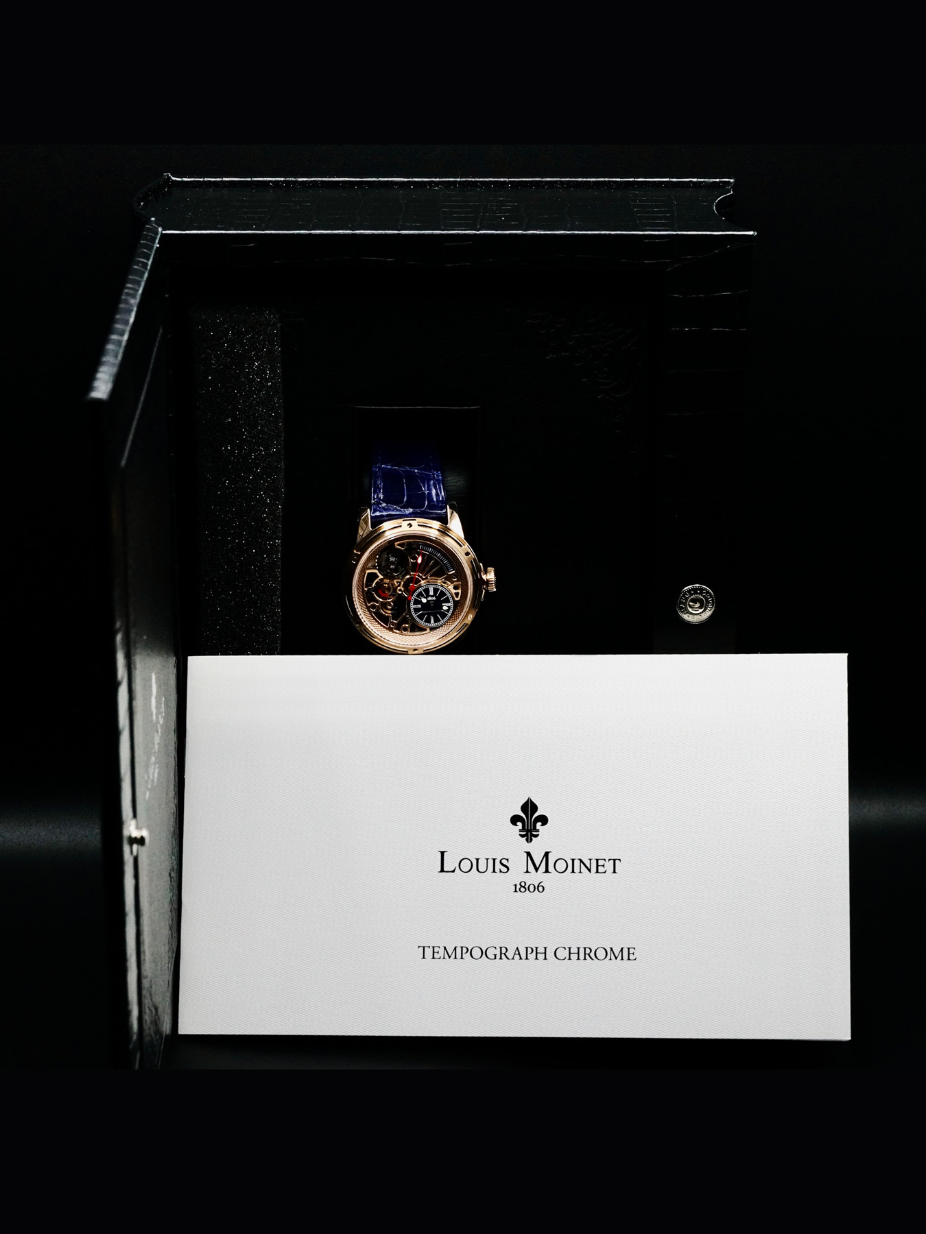 This Louis Moinet LM-50.50.20 Tempograph Chrome 18k Rose Gold is in EXCELLENT condition. This watch includes original box, instruction booklet and Warranty dated for March 2023. This watch has been fully authenticated and certified by Exquisite Timepieces.