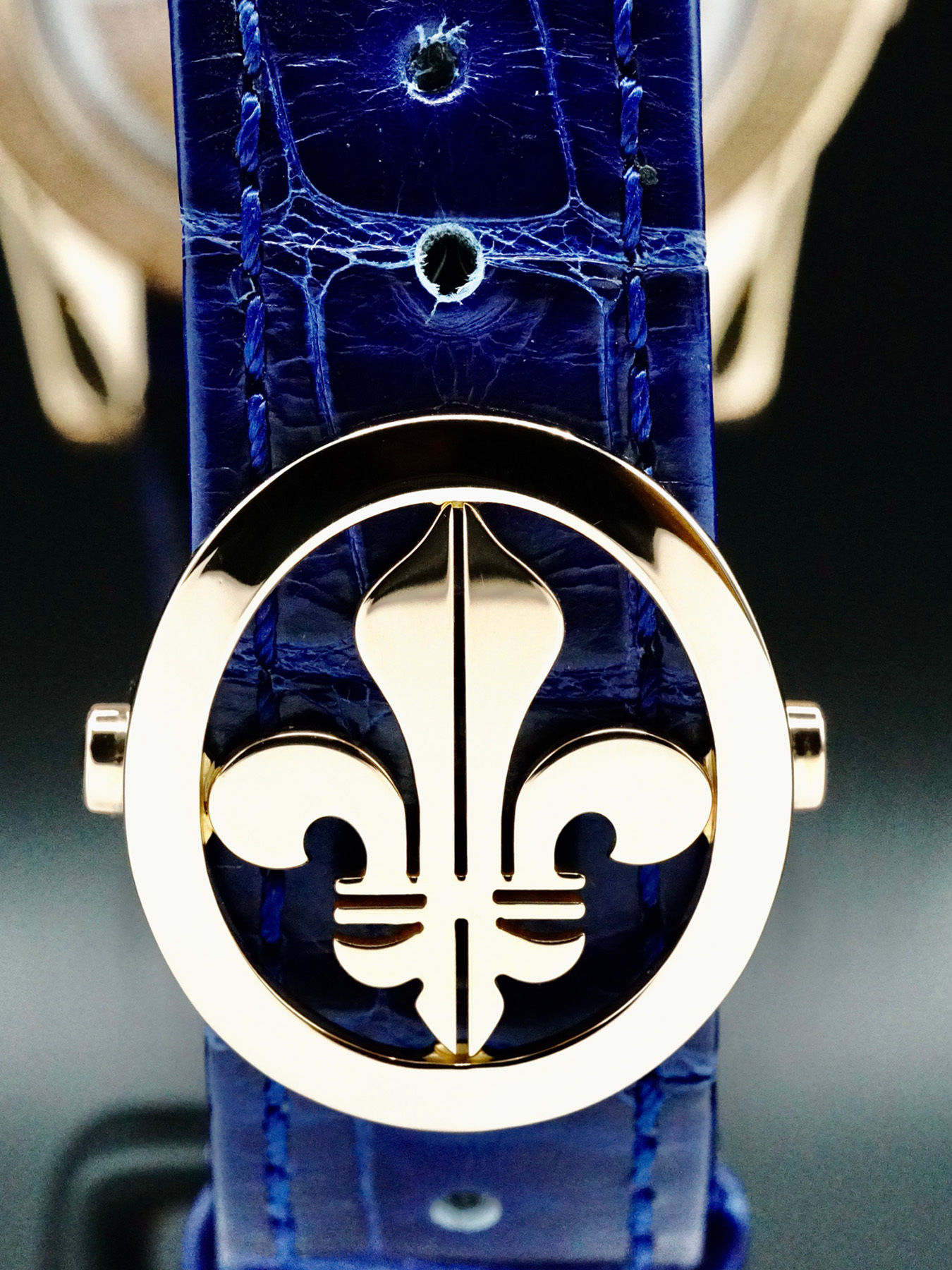 This watch features a 44mm 18k rose gold case on leather strap. This watch also sports a blue dial. Powered by a Mechanical Automatic Movement. Water resistance up to 50 meters.
