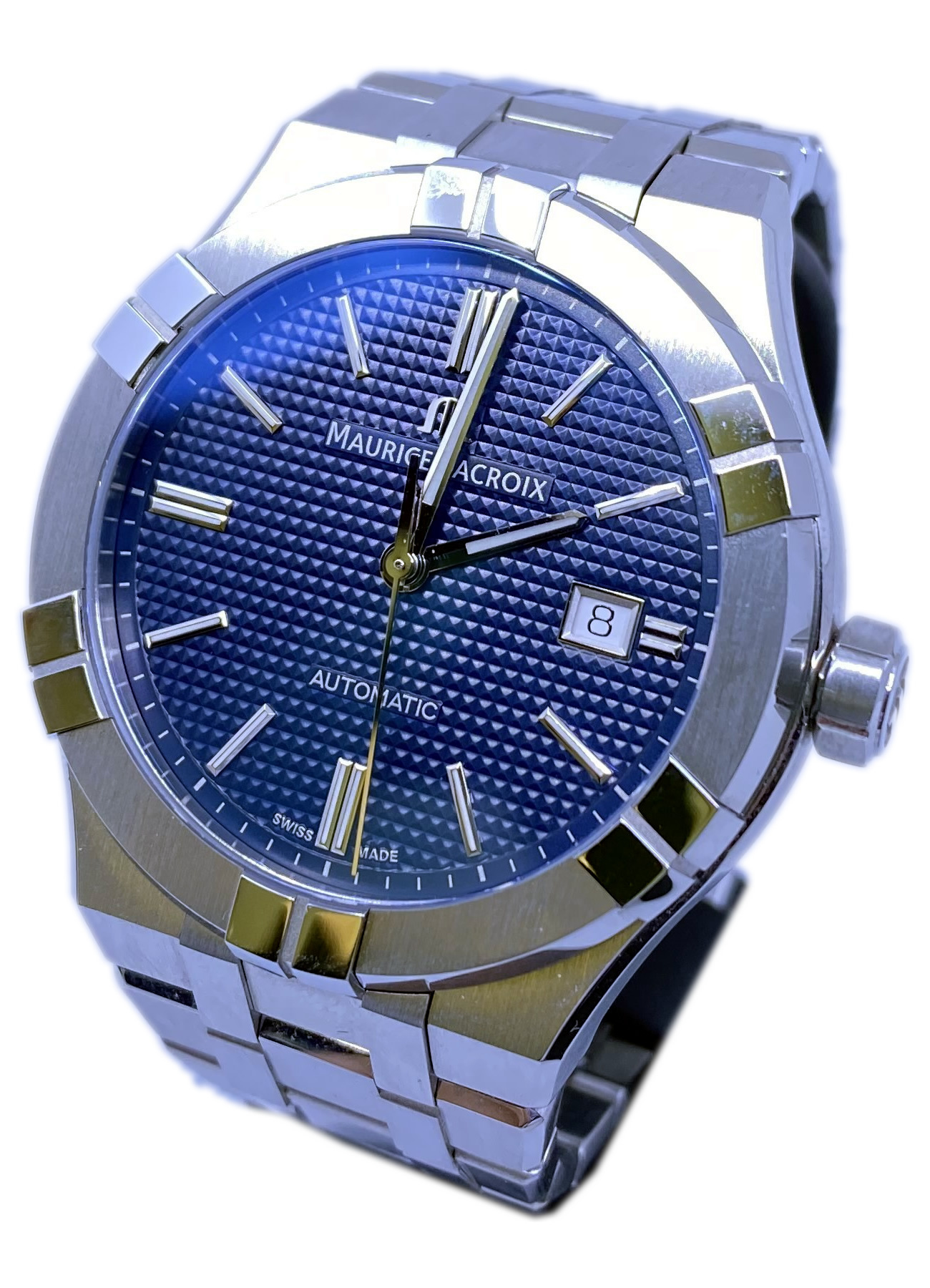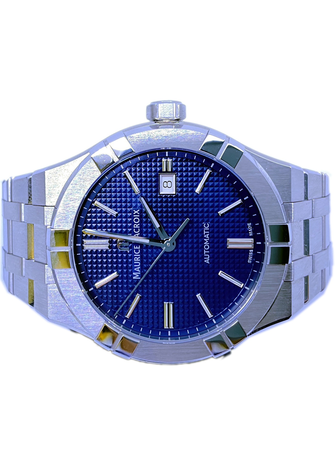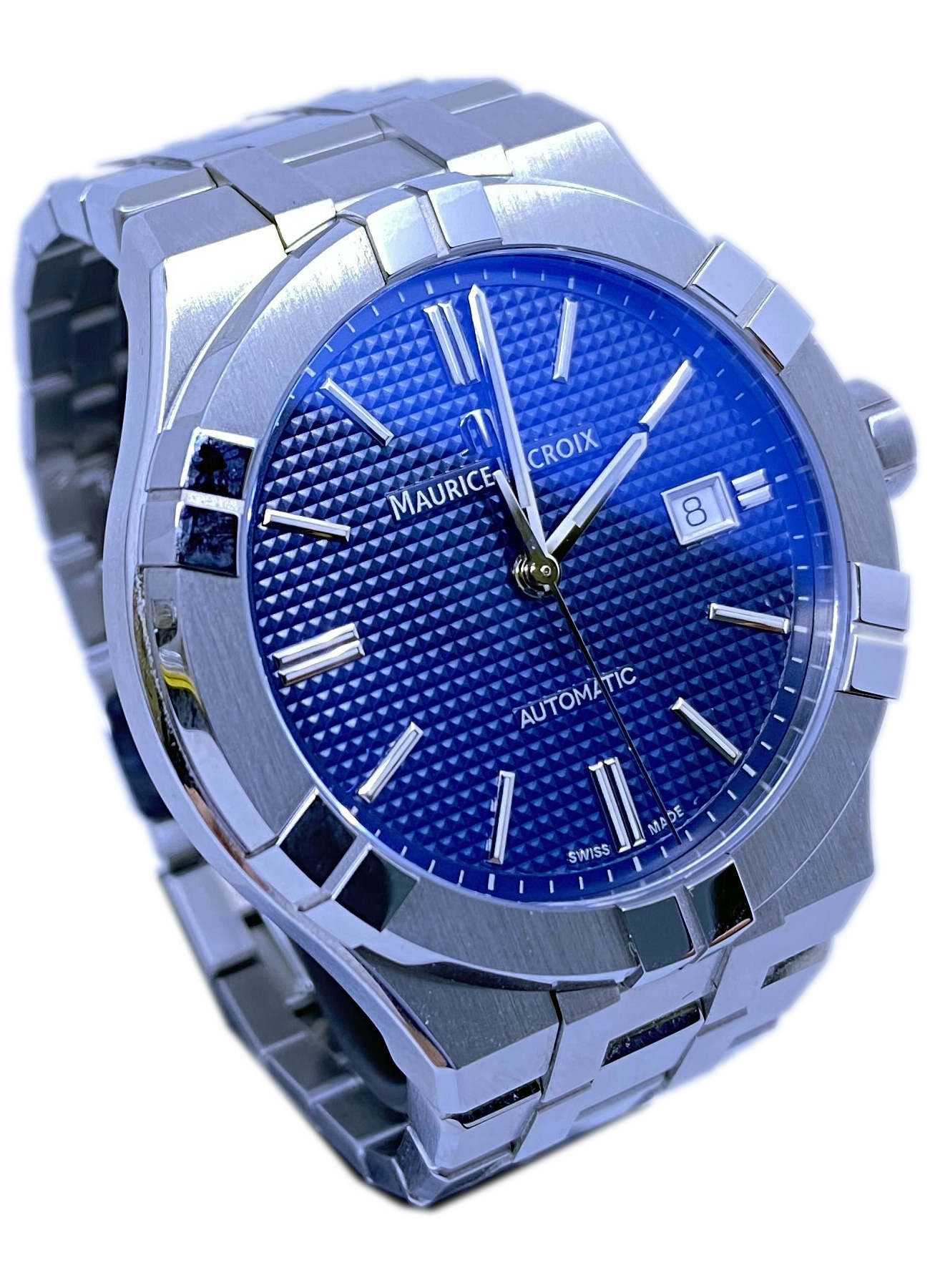 - This timepiece features a 42mm steel case paired with a high quality steel bracelet. It showcases a distinctive blue dial and is powered by a precise automatic winding movement. The watch is designed with a water resistance of up to 200m.