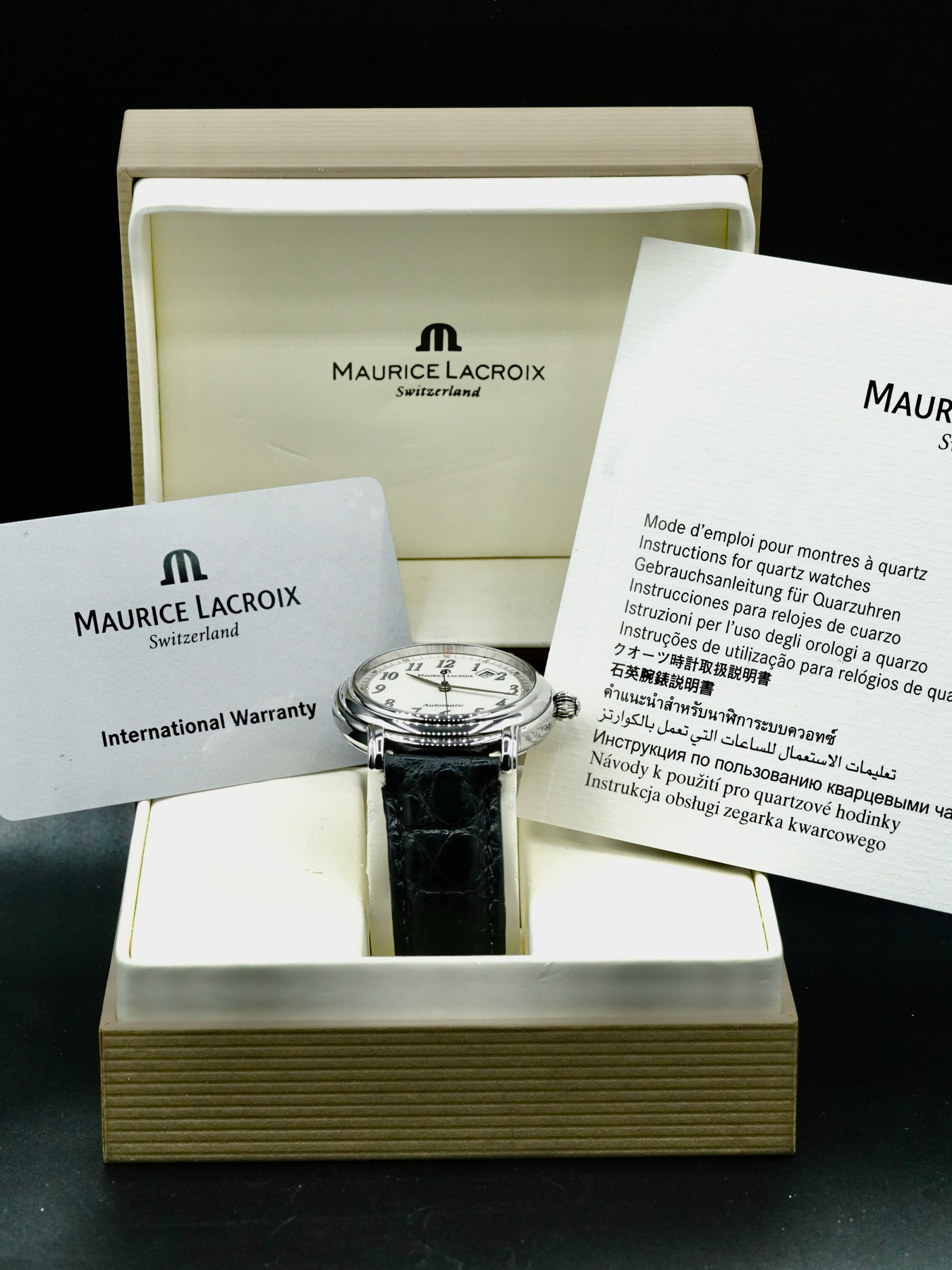 This Maurice LaCroix MP6158 is in EXCELLENT condition. This watch includes original box, instruction booklet and warranty card dated 2011.
