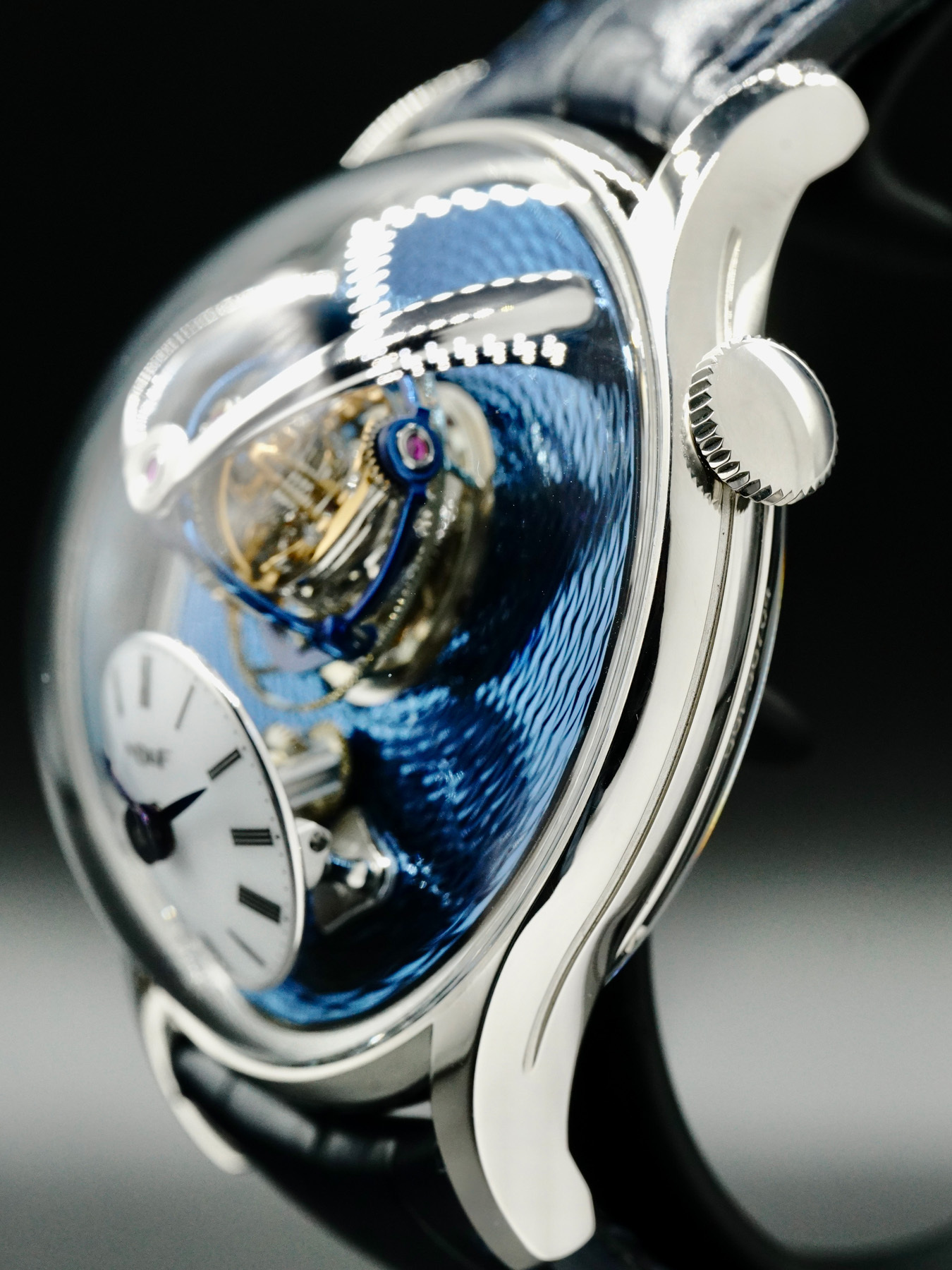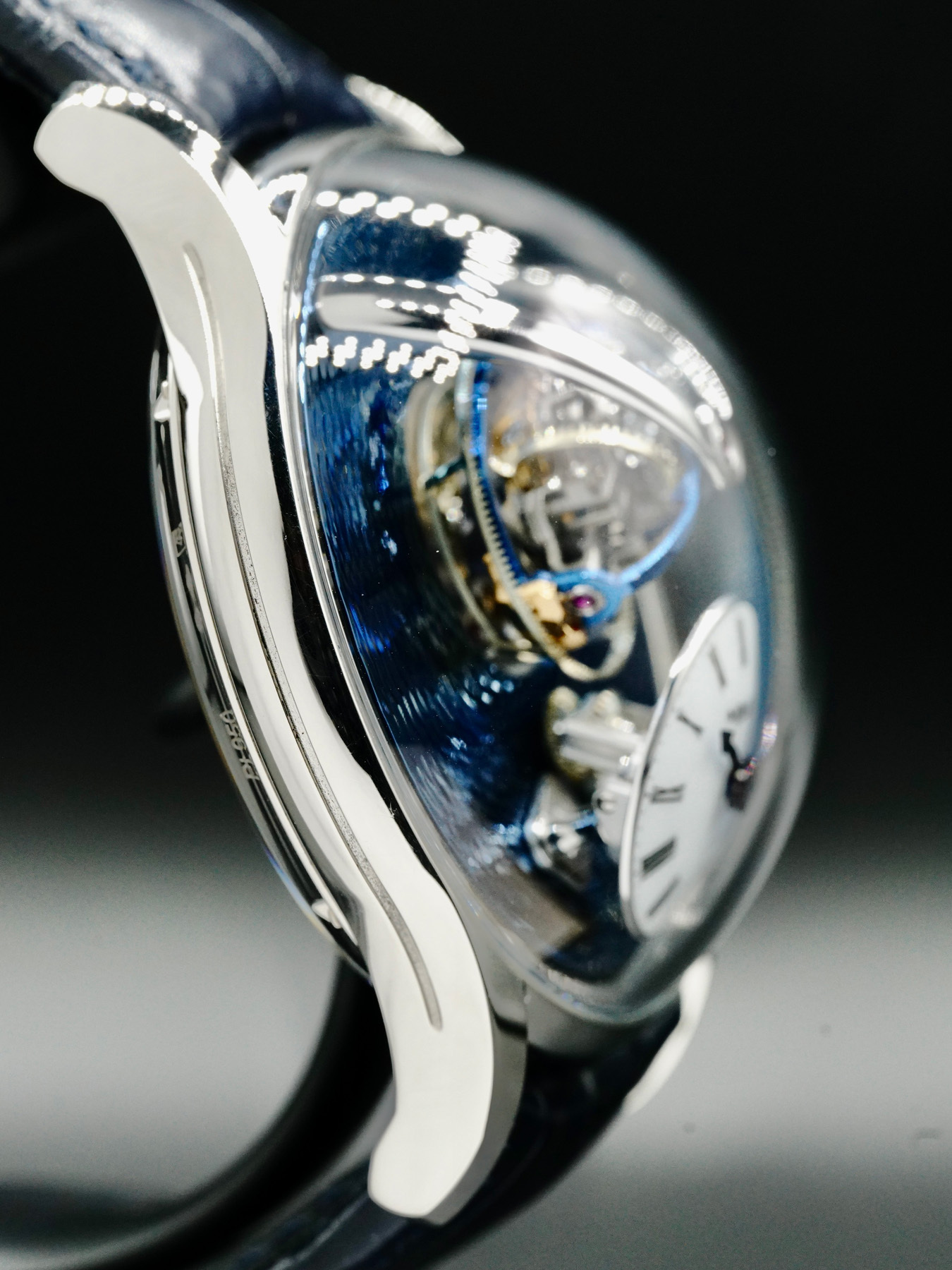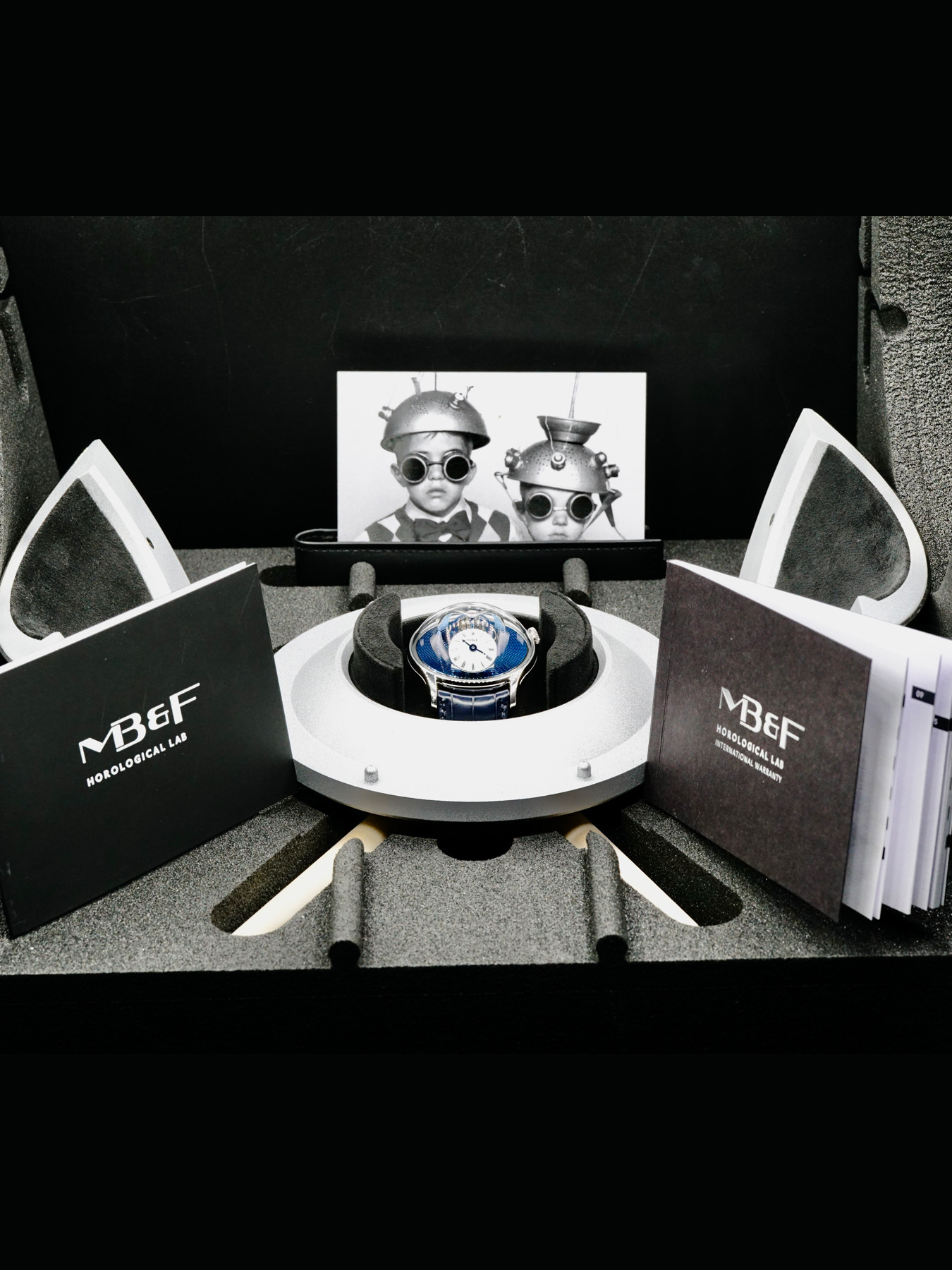 This MB&F Legacy Machine Thunderdome Platinum is in EXCELLENT condition. It has boxes and papers. International warranty
