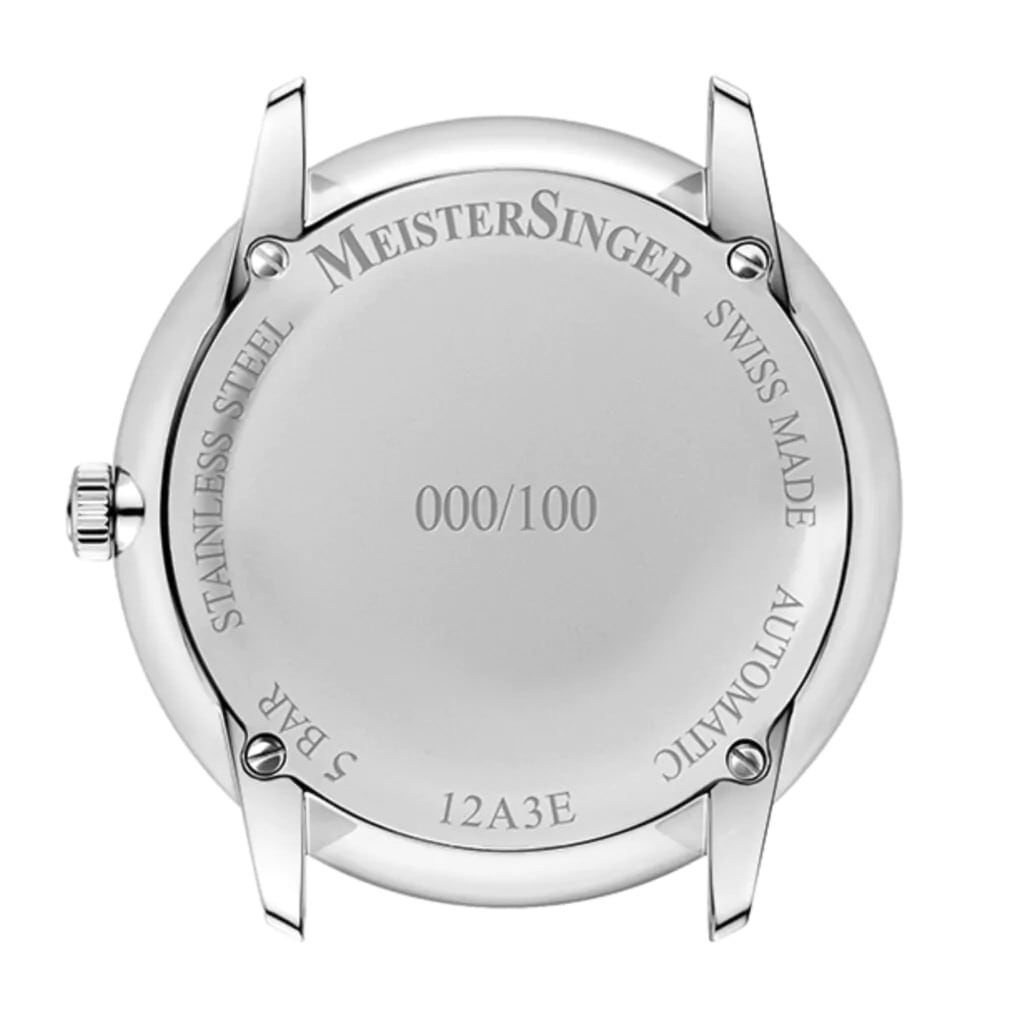 The line hierarchy typical of MeisterSinger single-hand watches additionally divides the time display into half and quarter hours, thus making it easier to read off the time accurately.