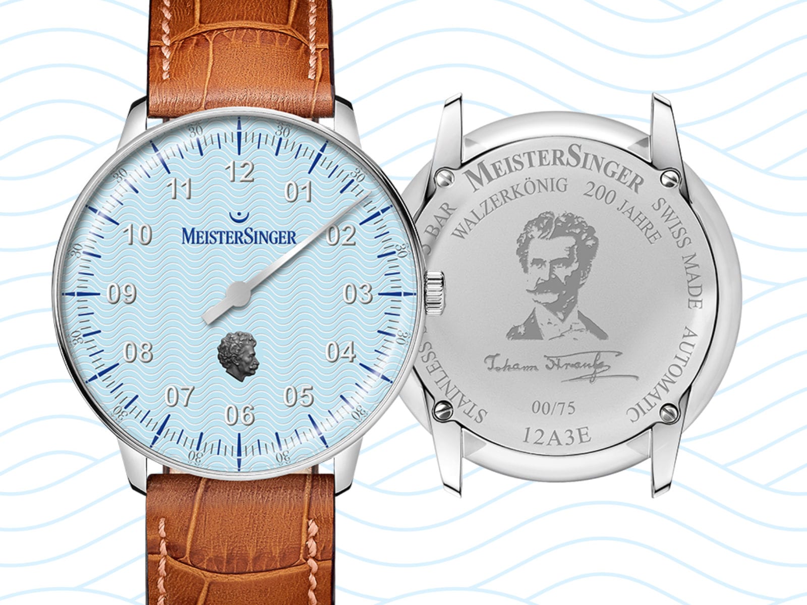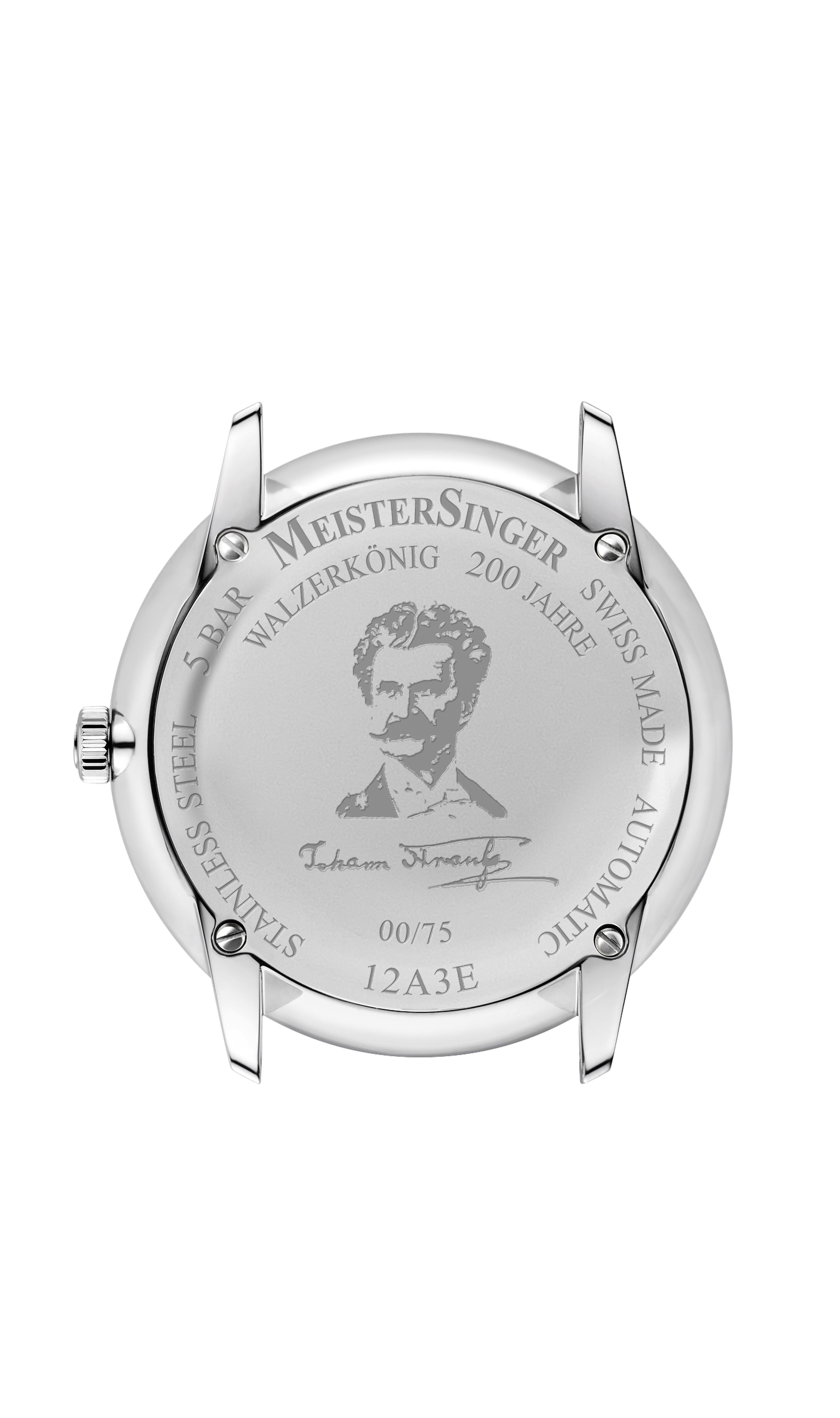 Johann Strauss (1825–1899) was an exceptional musical talent. As a composer, conductor, and celebrated virtuoso, he shaped the cultural identity of the 19th century far beyond the Austrian city of Vienna. No other name is as closely associated with the waltz as his – and hardly any other work symbolizes Austrian musical tradition as much as The Blue Danube. To mark his 200th birthday in 2025, MeisterSinger is dedicating not just one, but two exclusive, strictly limited edition watches to the Waltz King. The Johann Strauss Neo Edition is limited to 75 pieces. MeisterSinger has spared no expense in creating the packaging of each of these unique watches, which feature a portrait of Johann Strauss and an embossed design.