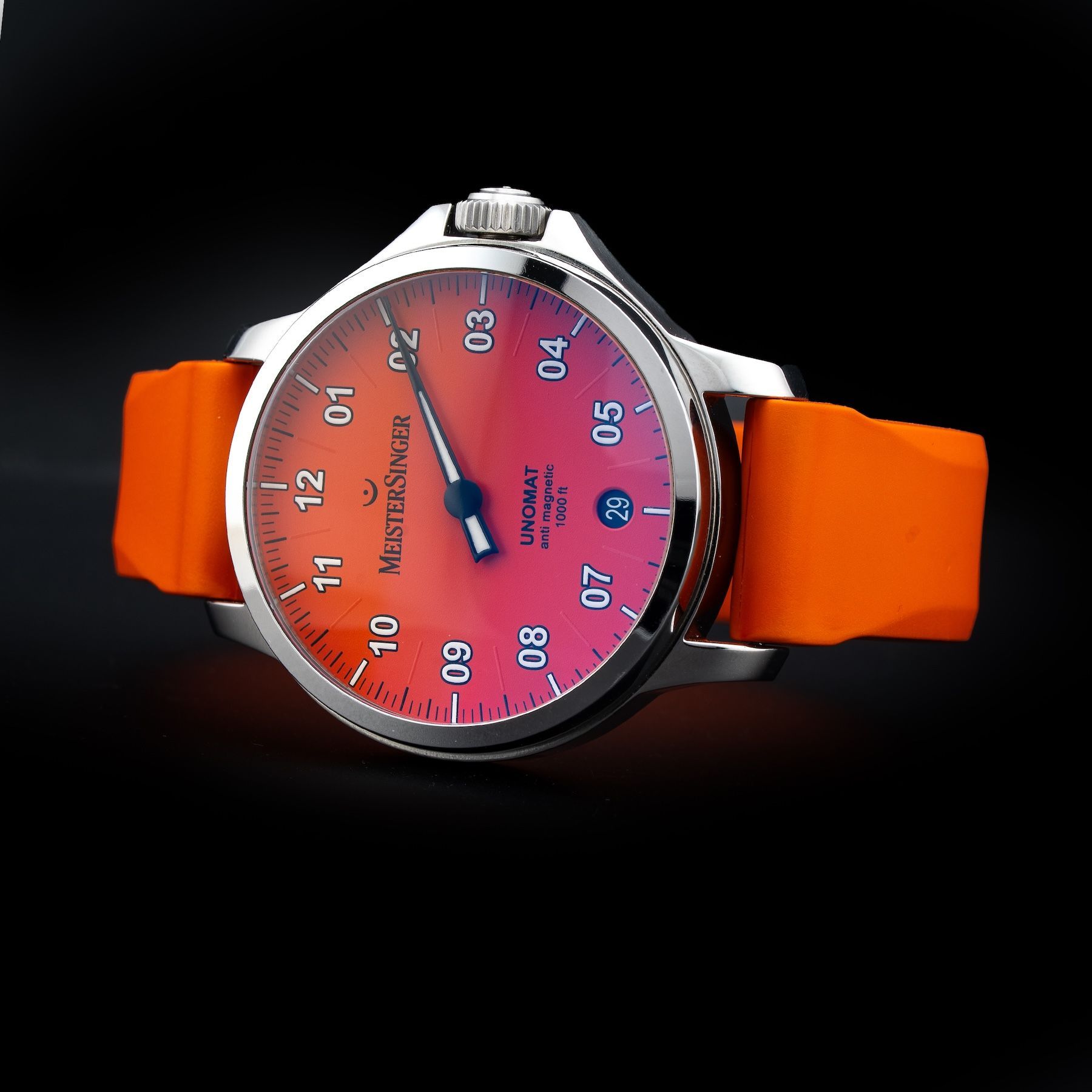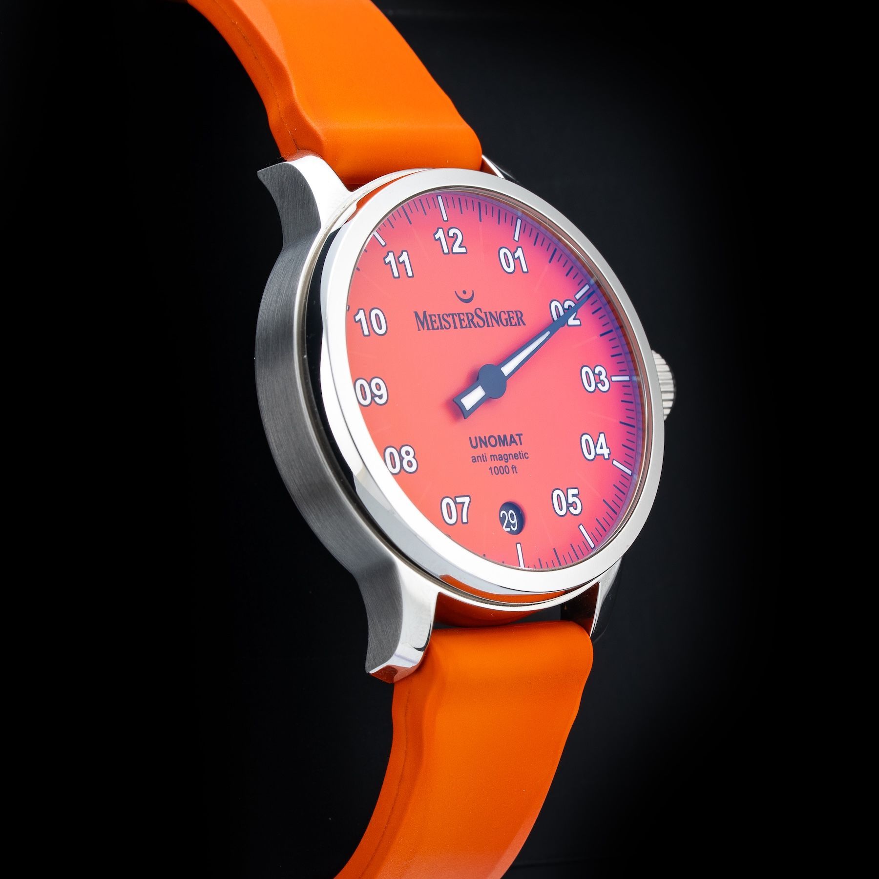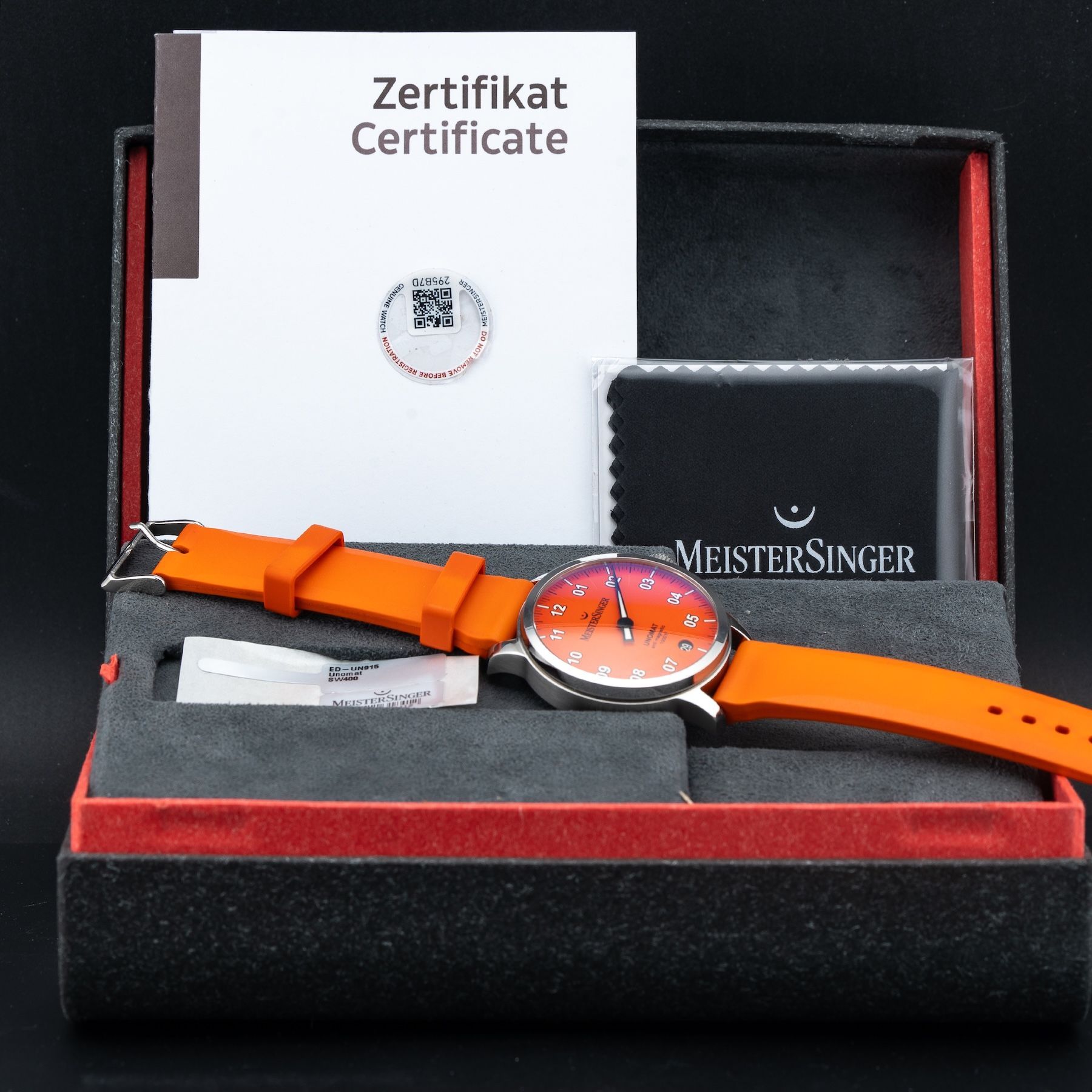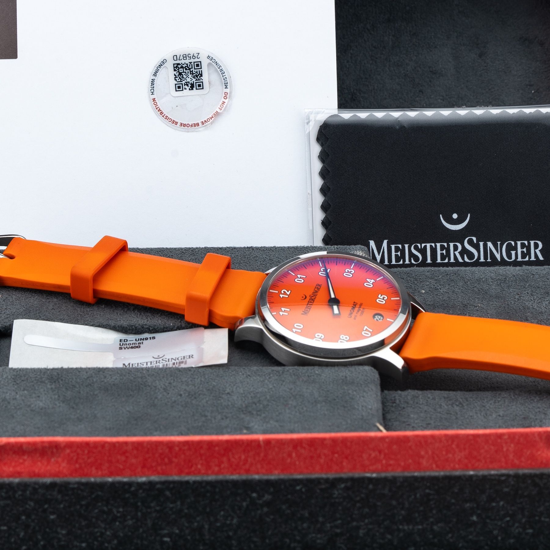 This Meistersinger ED-UN915 Unomat Orange is in GREAT condition, it has boxes, papers and warranty card dated 01/03/2024. This watch has been fully authenticated and certified by Exquisite Timepieces.Please note, the photos shown are of the actual watch you will receive.