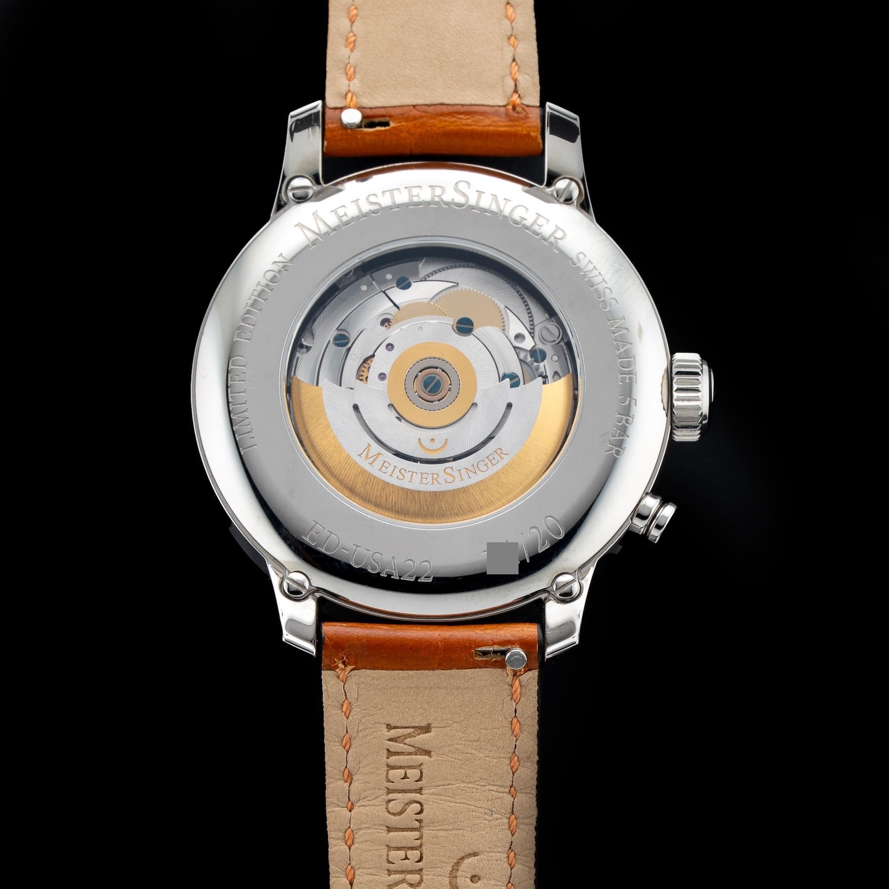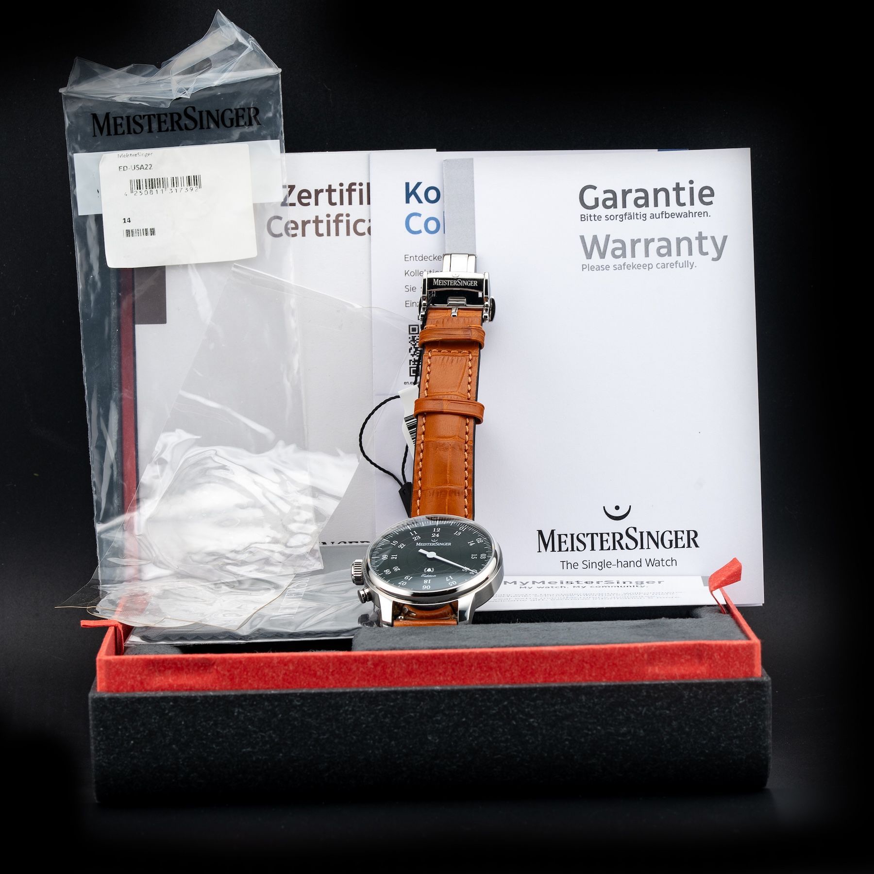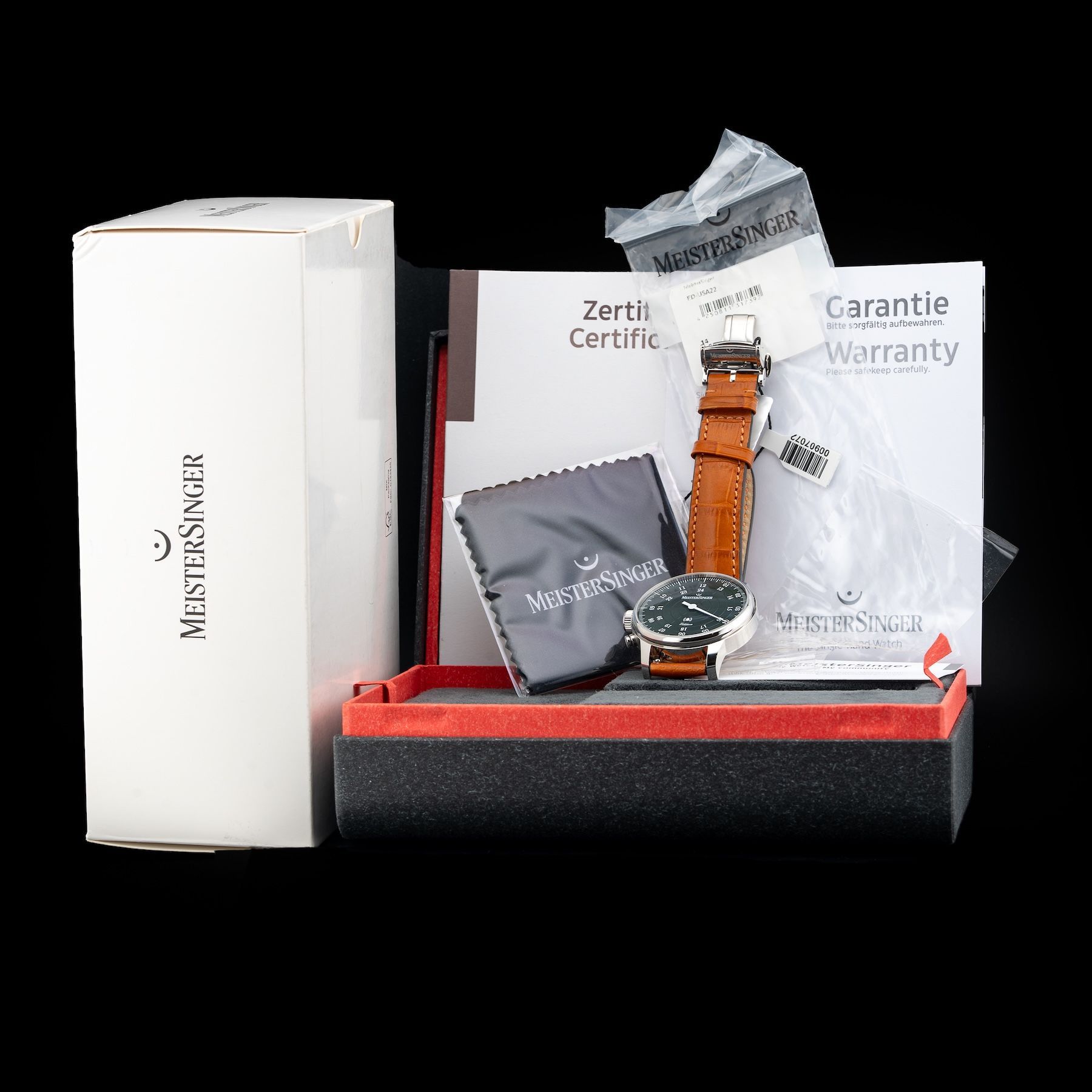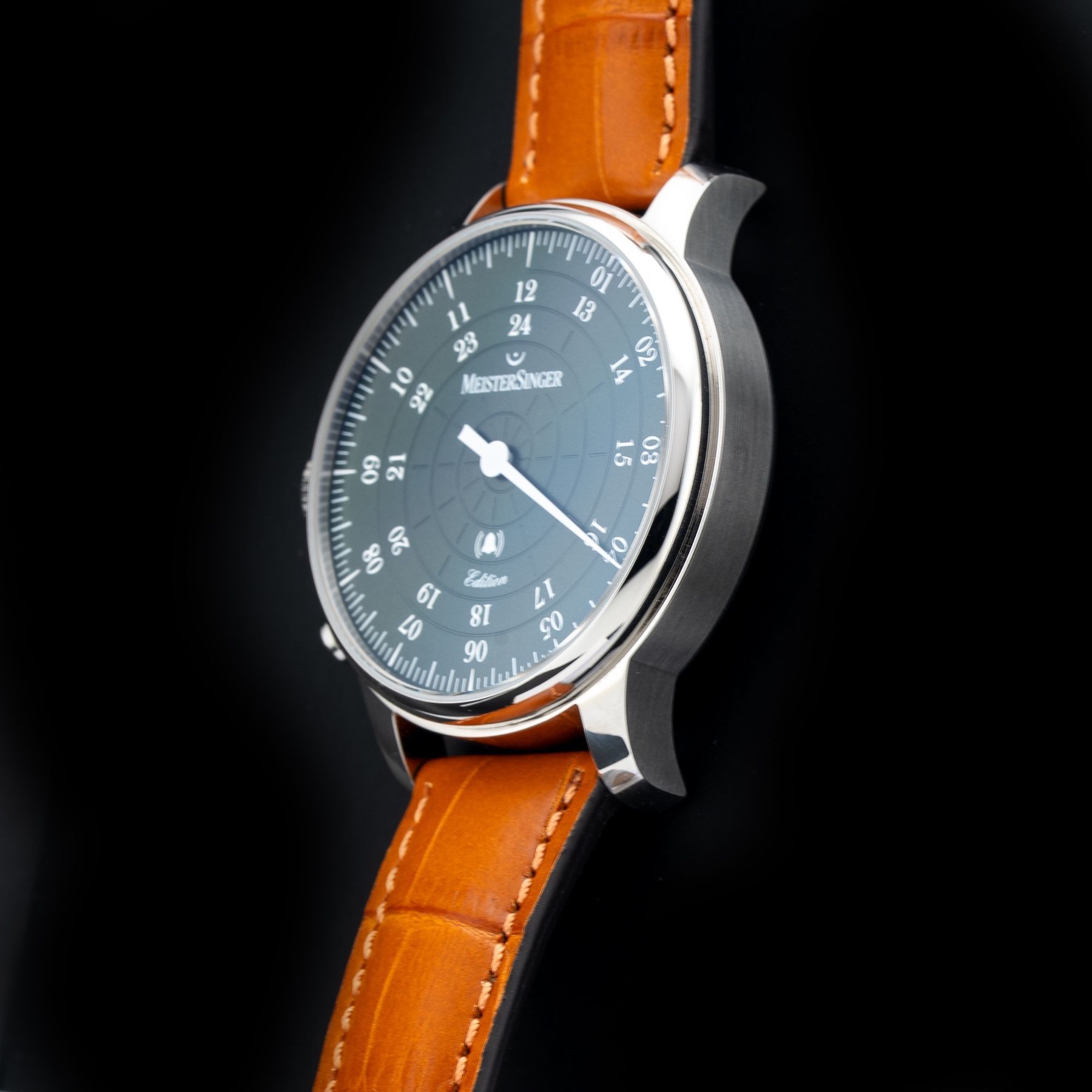 This Meistersinger ED-USA22 Bell Hora Petrol Dial Left Handed is in GREAT condition, it has boxes, papers and warranty card dated 02/27/2025. This watch has been fully authenticated and certified by Exquisite Timepieces.Please note, the photos shown are of the actual watch you will receive.