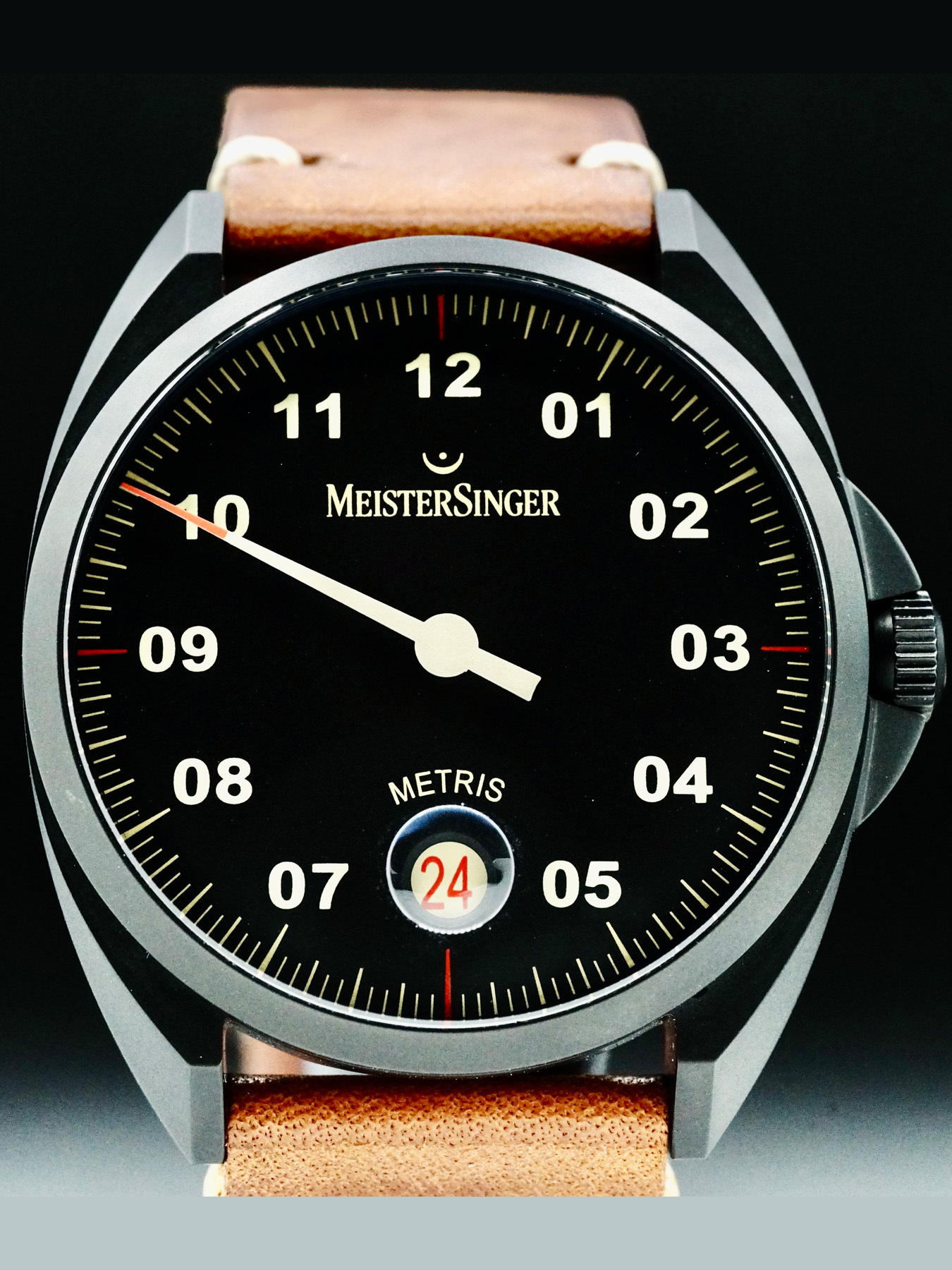 This MeisterSinger Metris Black Line ME902BL is in EXCELLENT condition. This watch includes its original box, user manual, and warranty dated for May 2023.