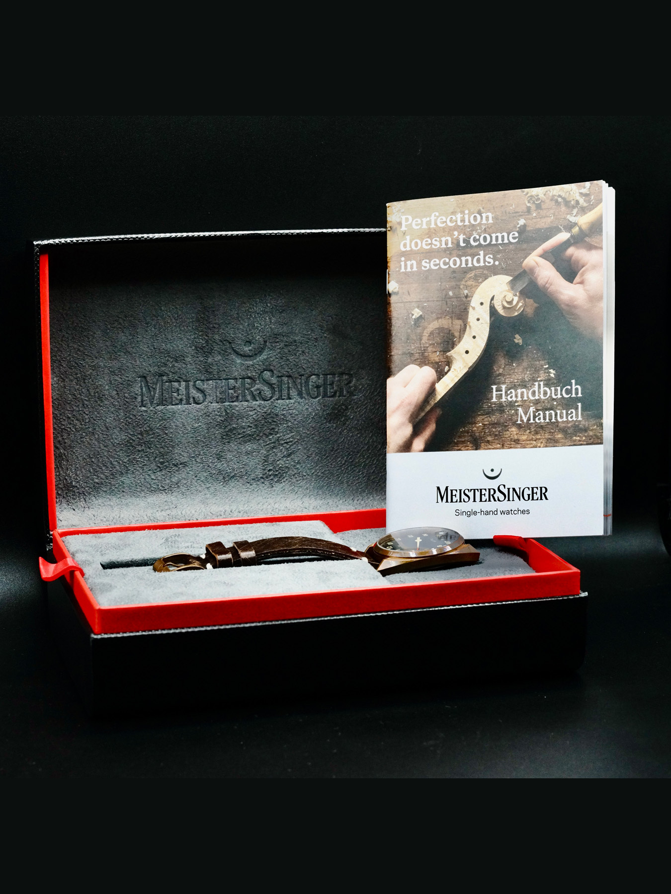 This MeisterSinger ME917BR Metris Bronze is in GOOD condition. This watch includes original box and instruction booklet.