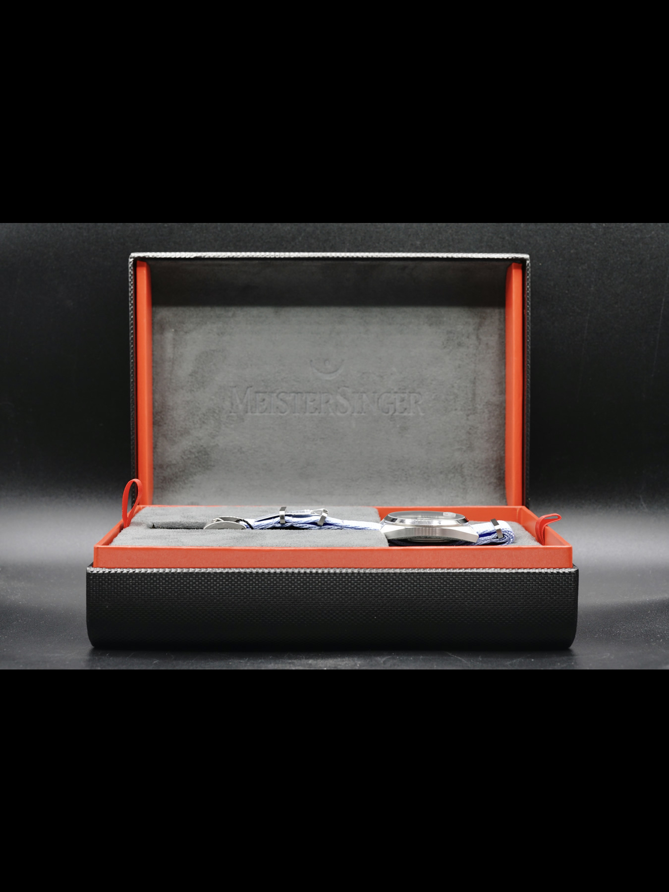 This MeisterSinger Metris ME908 is in EXCELLENT condition. This watch includes its original box and warranty & service handbook.