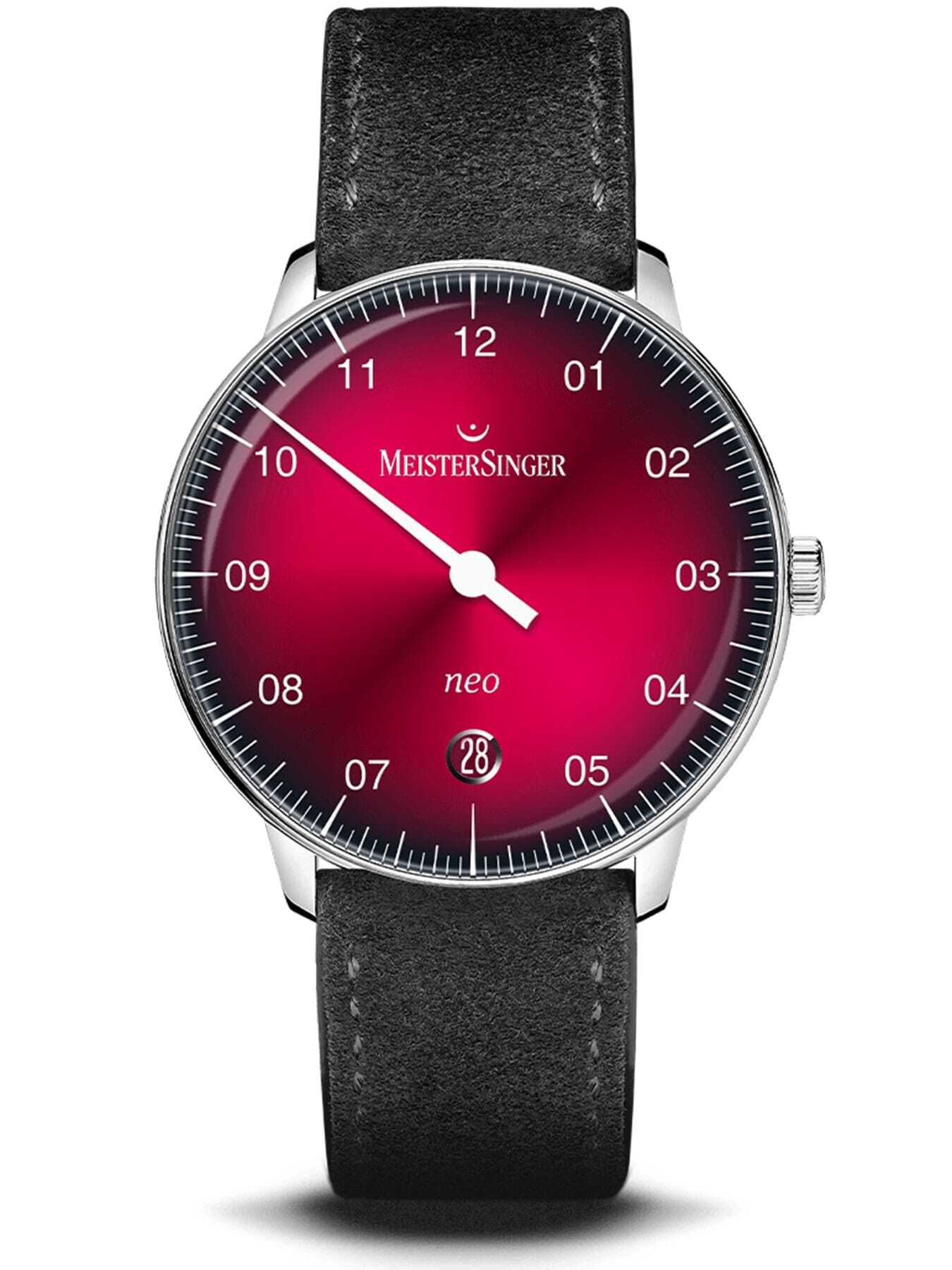 But the Neo is a younger design and a true MeisterSinger through and through, with the single hour hand and the double-digit hour numerals all round in functional typography. The date window at 6 o’clock is just as round as the watch itself.
