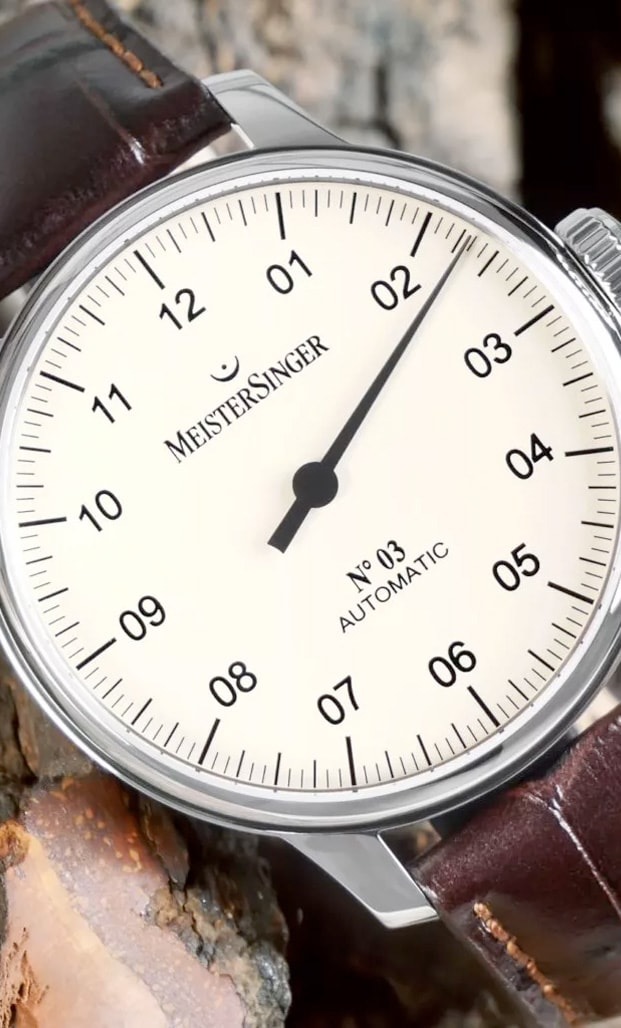 No second hand, no minute hand, no date, no split second hand, no second and third time zones and no winding. The kinetic energy of your arm automatically winds the mainspring as you move. And automatically slows your perception of time.