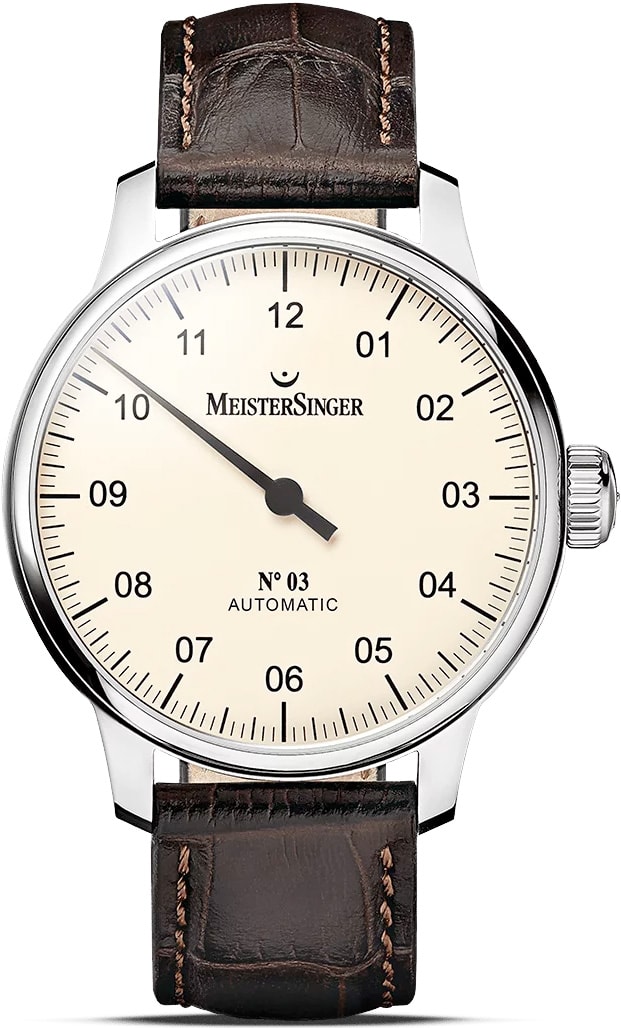 - This timepiece features a 43mm steel case paired with a high quality leather strap. It showcases a distinctive ivory dial and is powered by a precise automatic winding movement. The watch is designed with a water resistance of up to 50m.