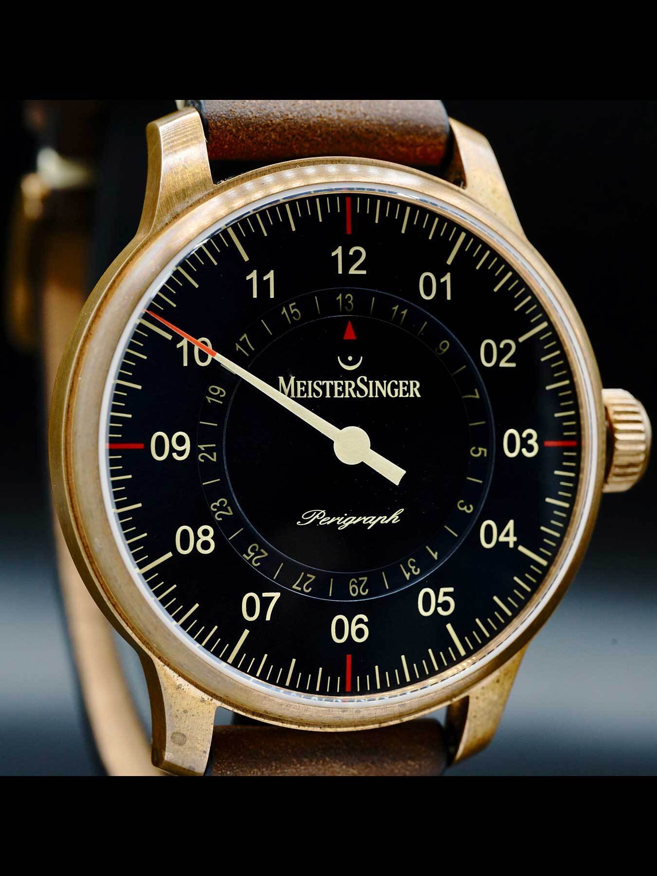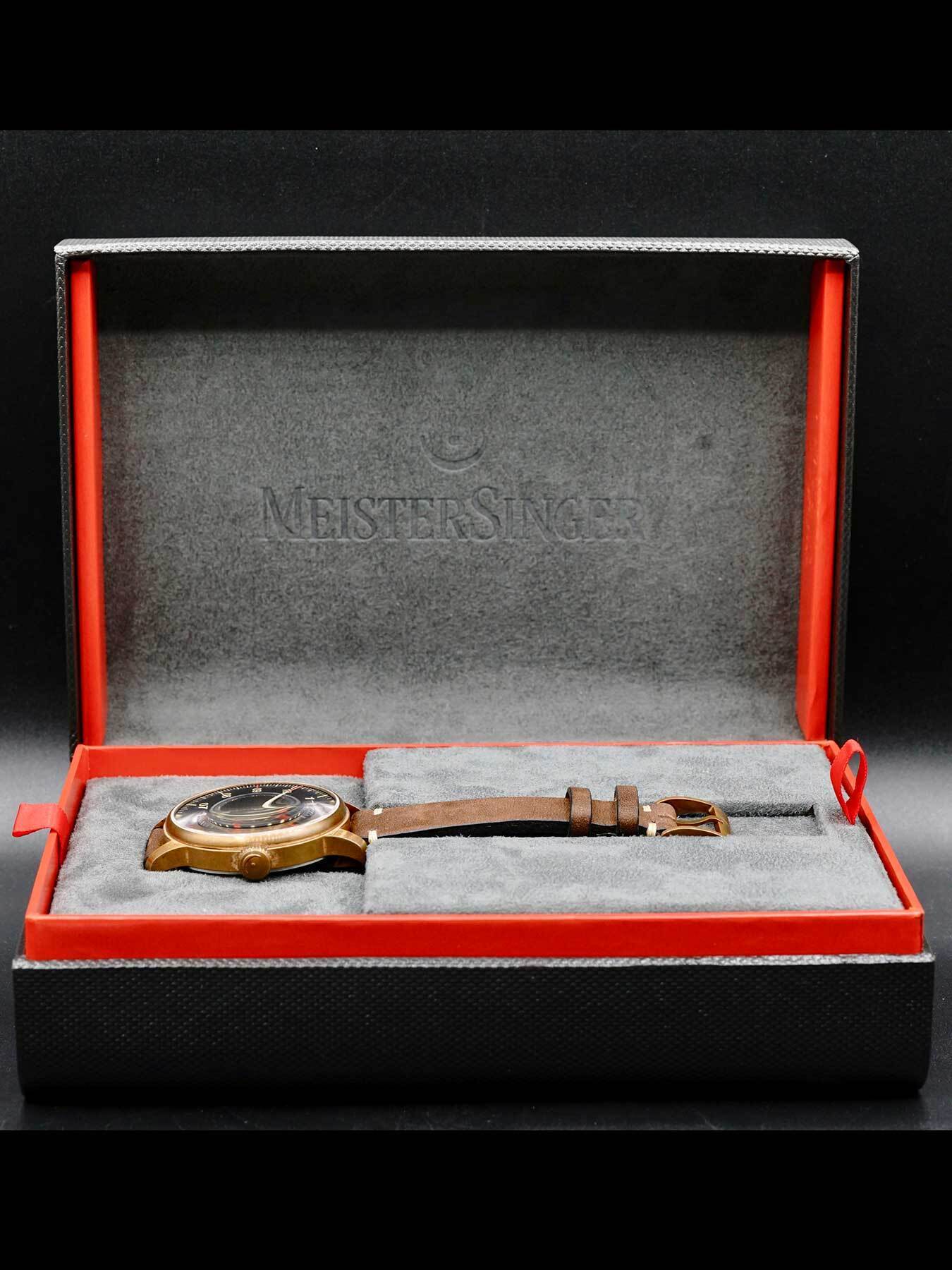 This MeisterSinger Perigraph AM1017BR is in EXCELLENT condition. This watch includes its original box, service handbook, and warranty dated for January 2020.