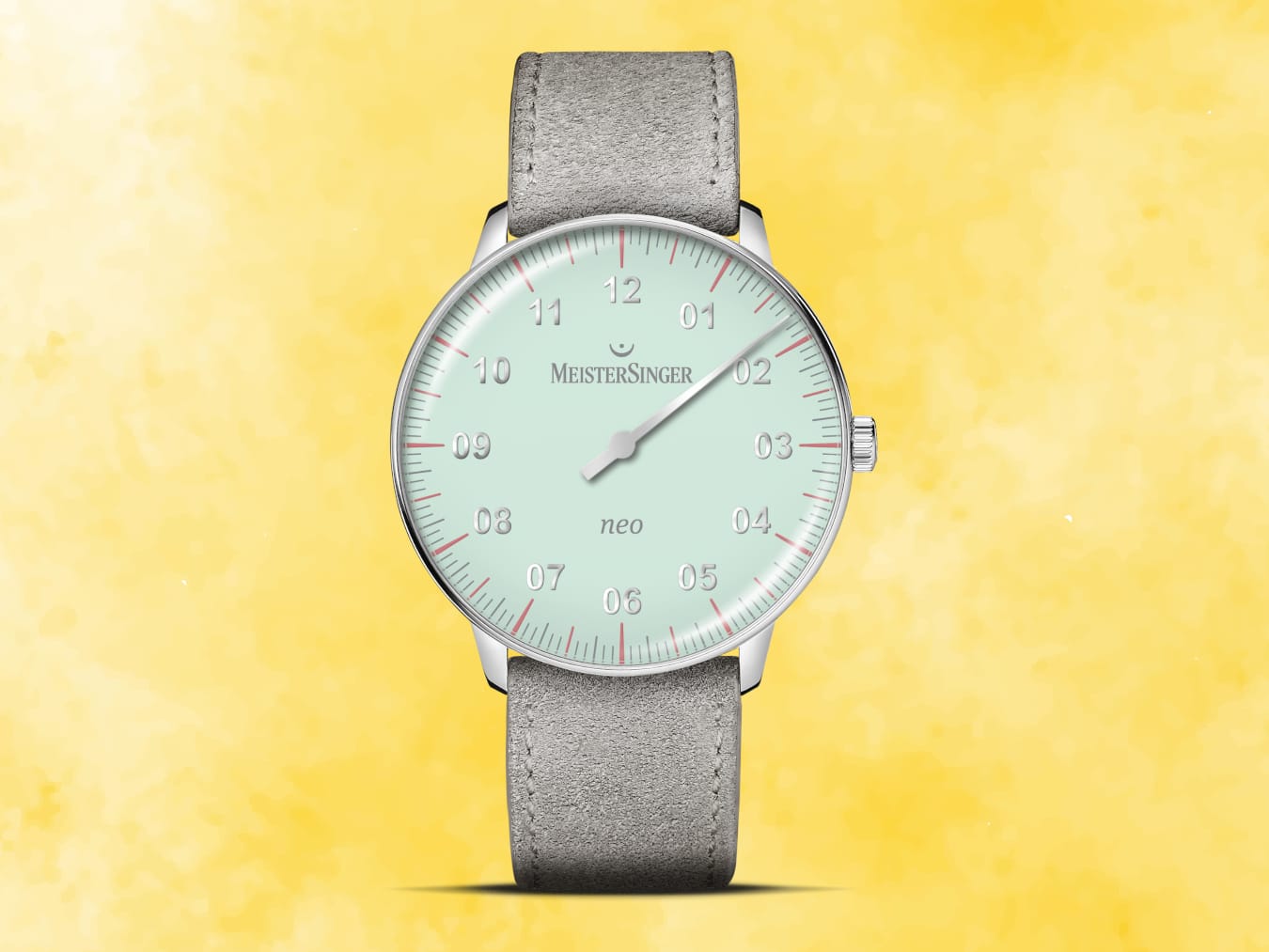The Neo has been a staple of the MeisterSinger collection for years. Its design is reminiscent of the elegant dress watches of the 1950s and 1960s: A narrow case rim places the dial at the center of attention. The slightly curved glass further enhances the retro charm.