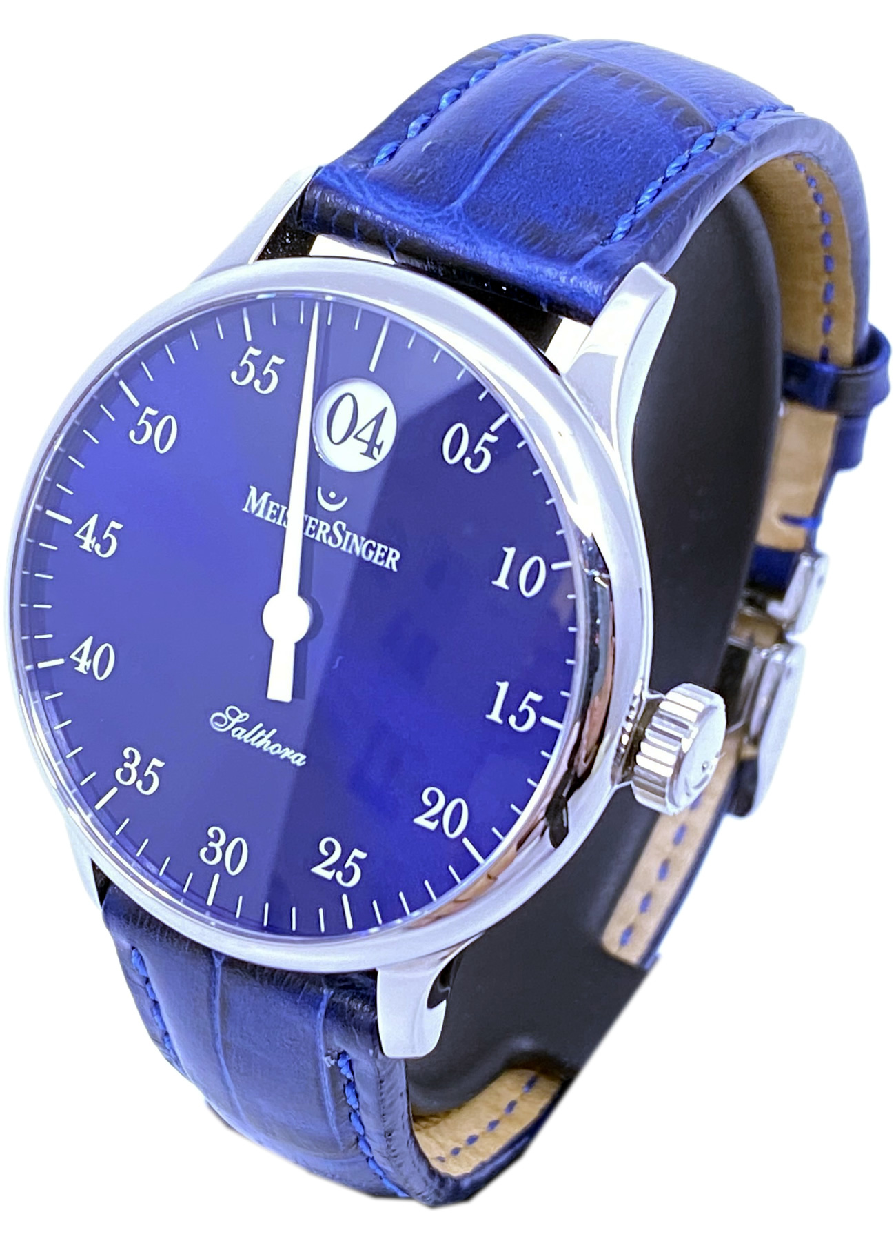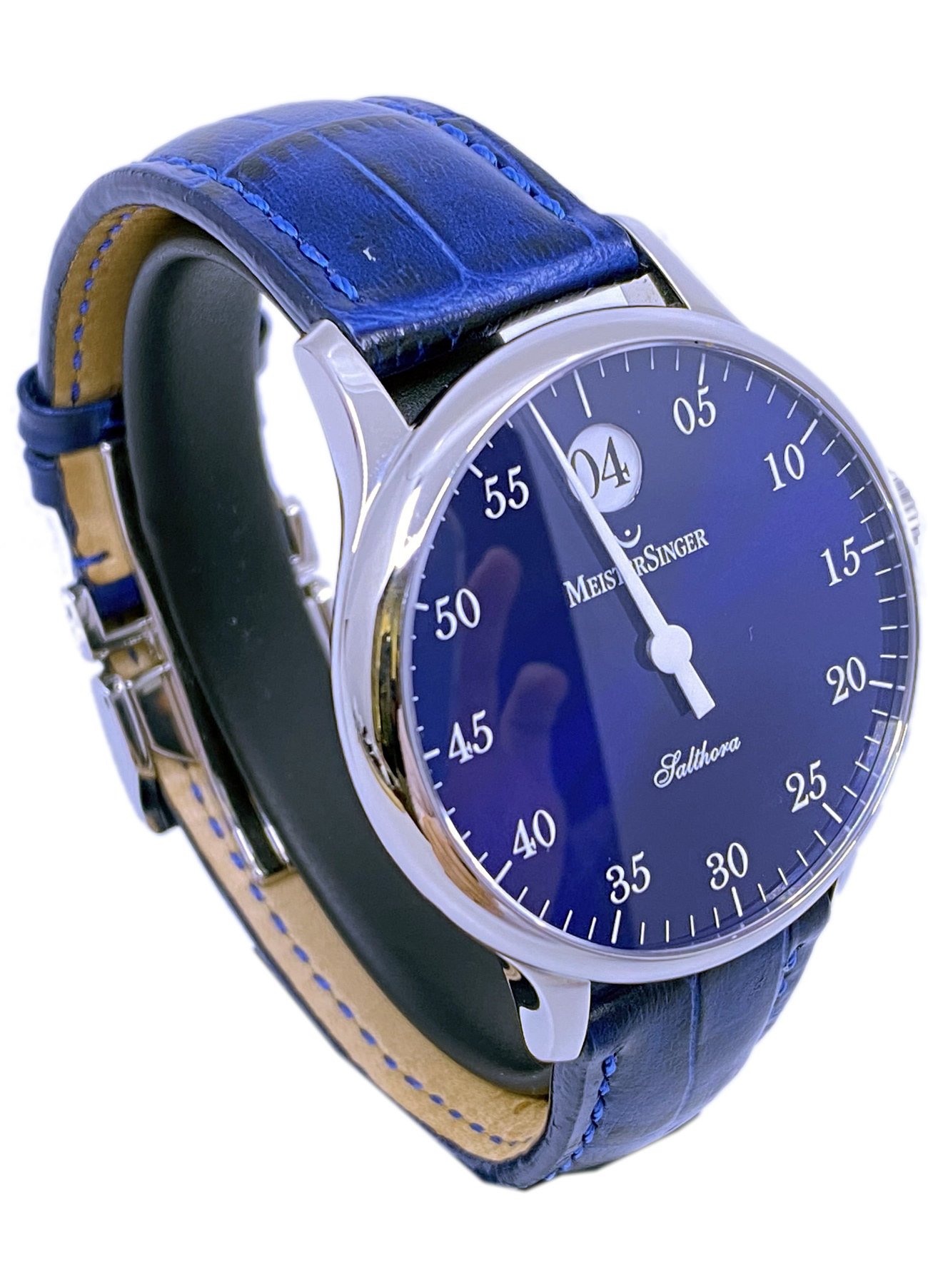 - This timepiece features a 40mm steel case paired with a high quality leather strap. It showcases a distinctive blue dial and is powered by a precise automatic winding movement. The watch is designed with a water resistance of up to 50M.