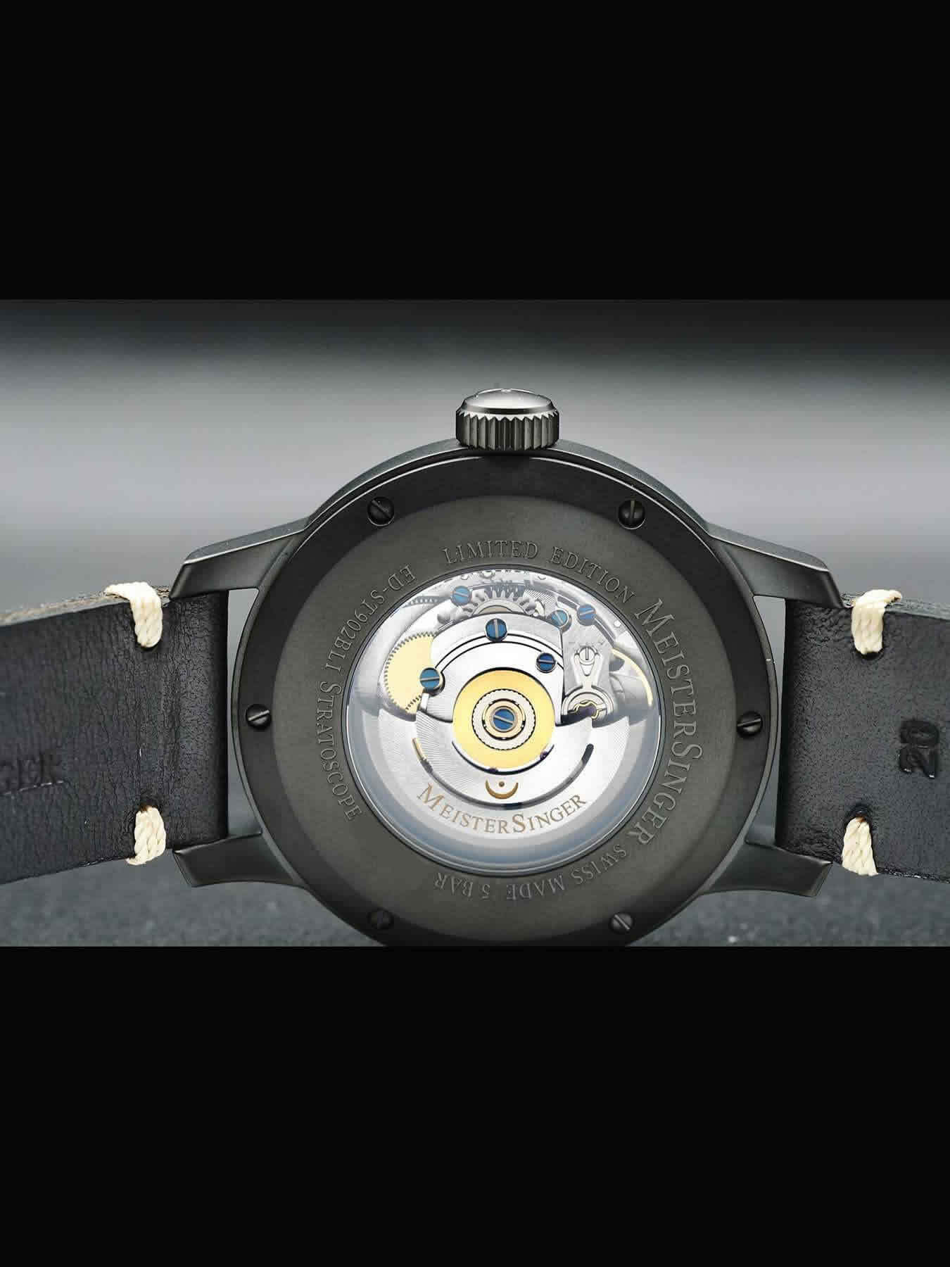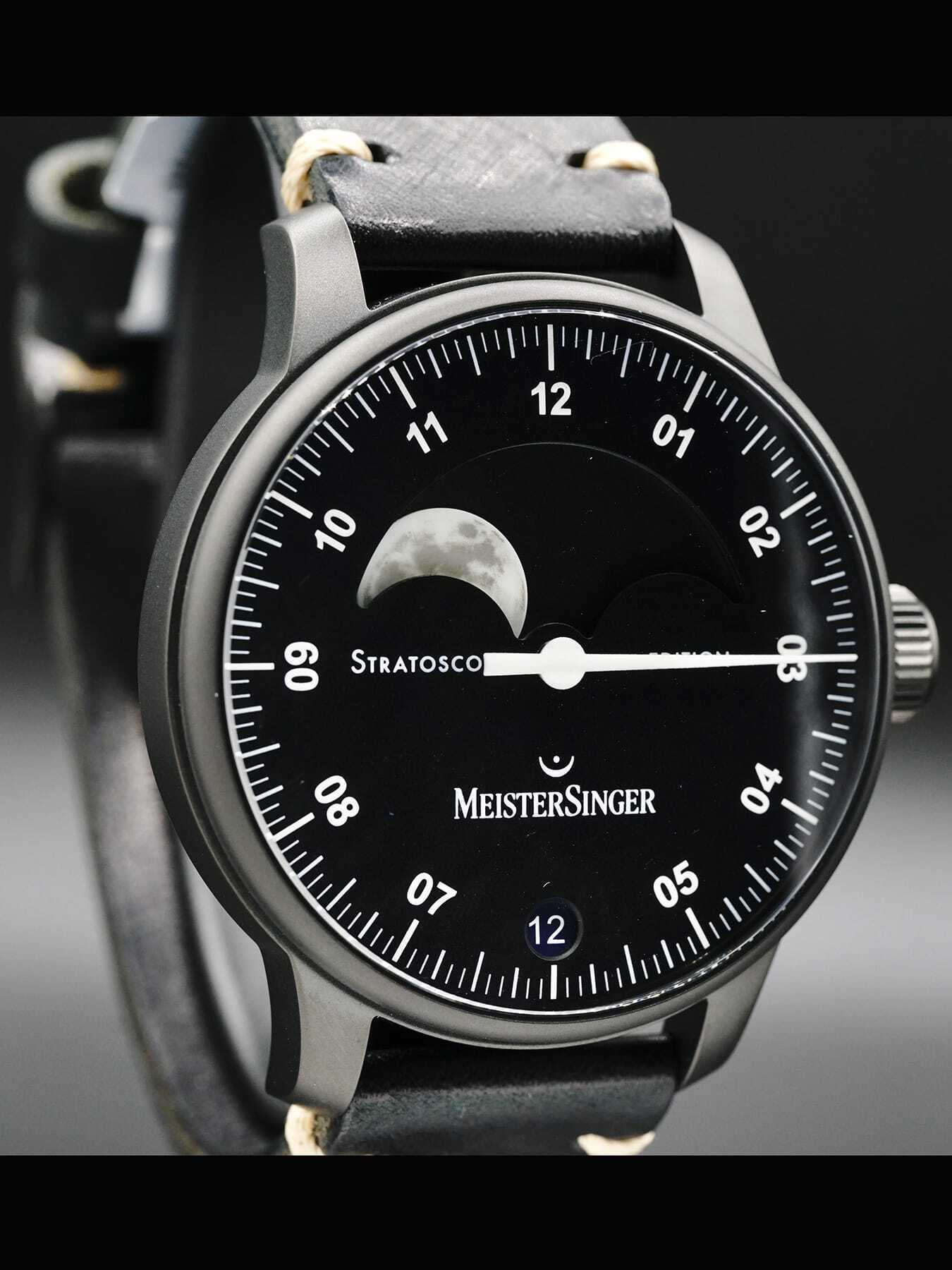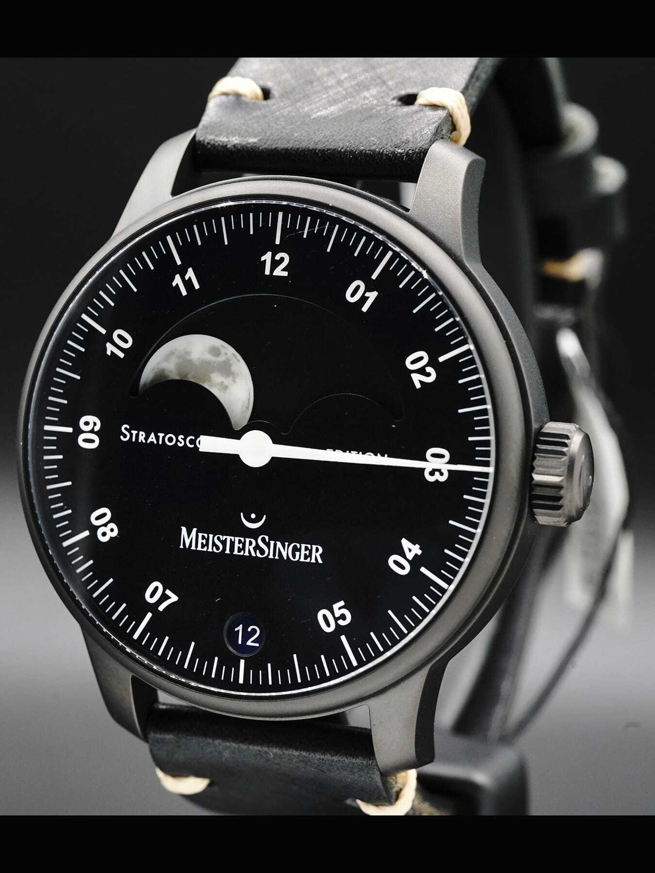 This MeisterSinger Stratoscope Black Limited Edition is in AS NEW condition. This watch includes its original box, user manual, and MeisterSinger certificate. Limited Edition of 20 Pieces.