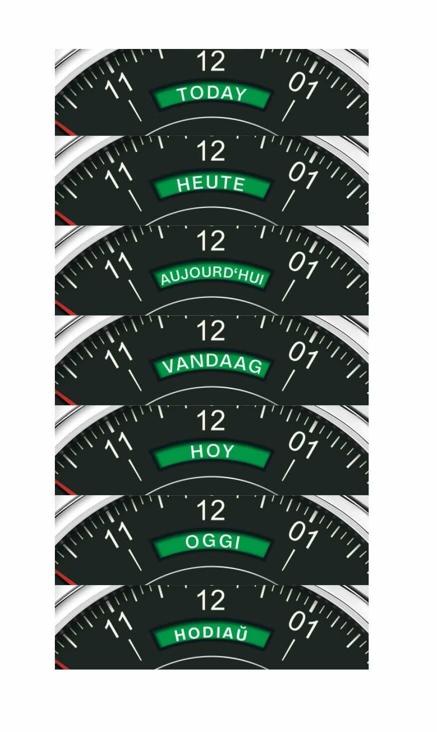 This is a limited edition of 100 pieces. This watch tells you how to say "today" in 7 different languages (English, German, French, Dutch, Spanish, Italian and Esperanto).