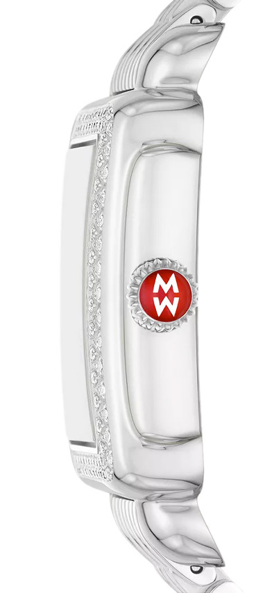 This stainless Deco Madison Mid shines with 148 hand-set diamonds on the bezel and atop the silver white sunray dial. The stainless bracelet is made specifically for the Deco Madison Mid collection and is interchangeable with any 16mm MICHELE strap.