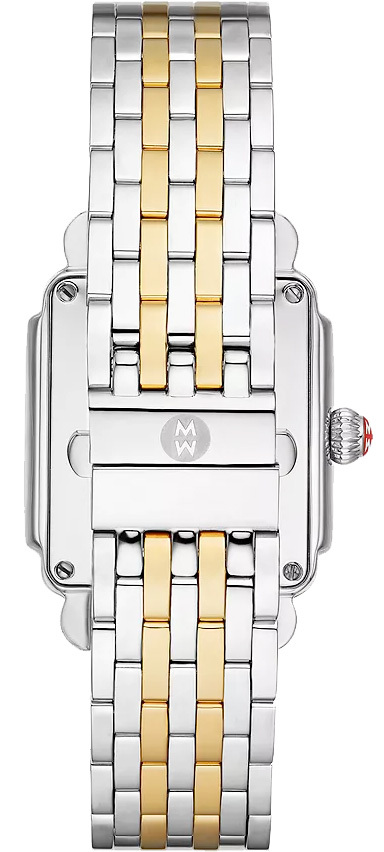 Together 18k gold plating and stainless give a chic look to MICHELE's iconic collection. With diamonds indexes and signature MICHELE touches, the Deco Mid is a must for any watch lover. The two-tone stainless-steel bracelet is interchangeable with any 16mm MICHELE strap.