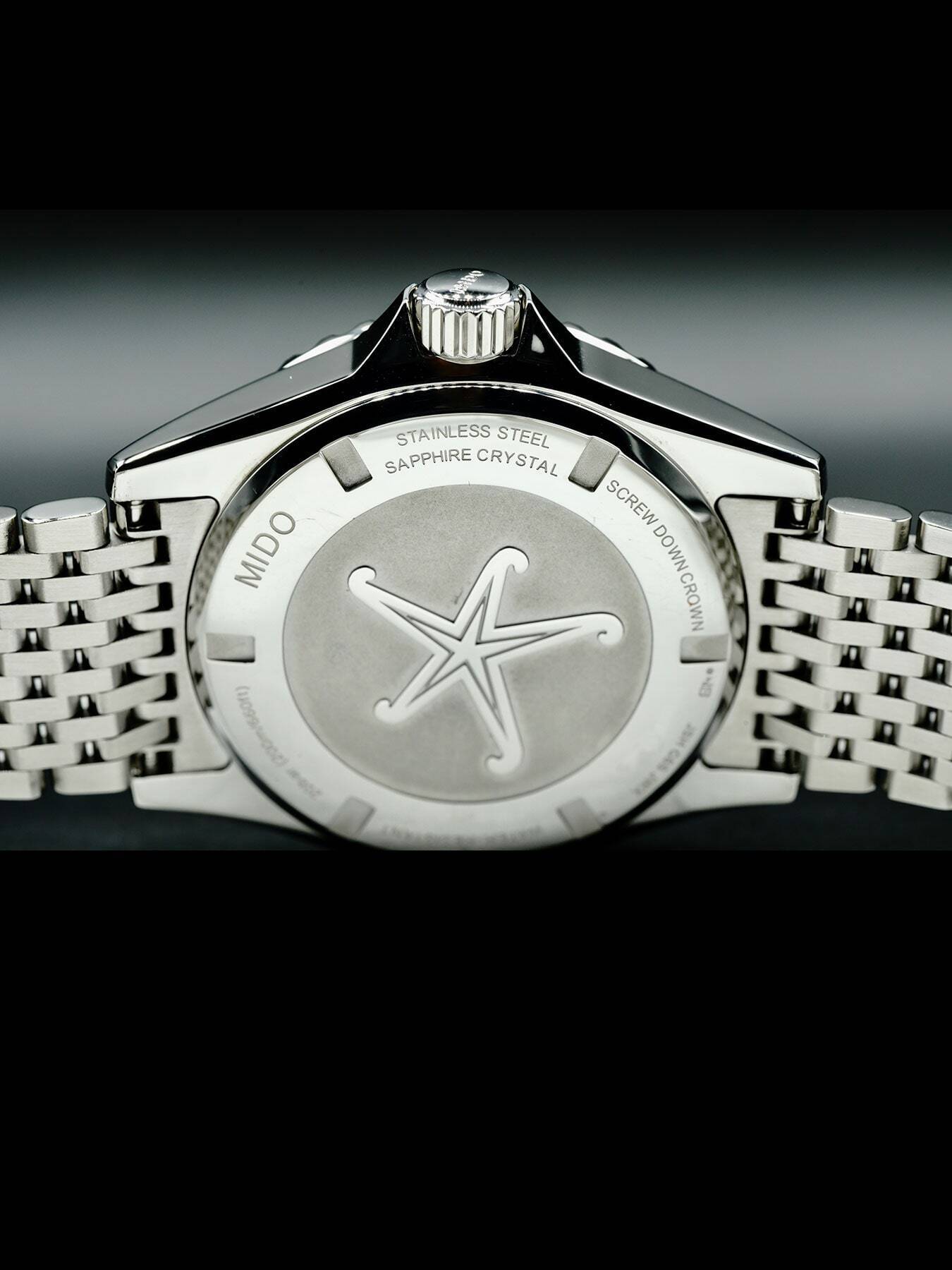 Automatic movement powered by Mido Caliber 80 (base ETA C07.621) for a power reserve of approximately 80 hours.