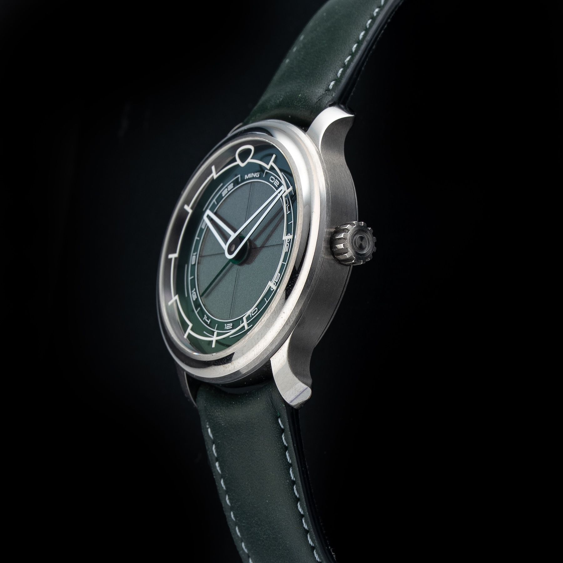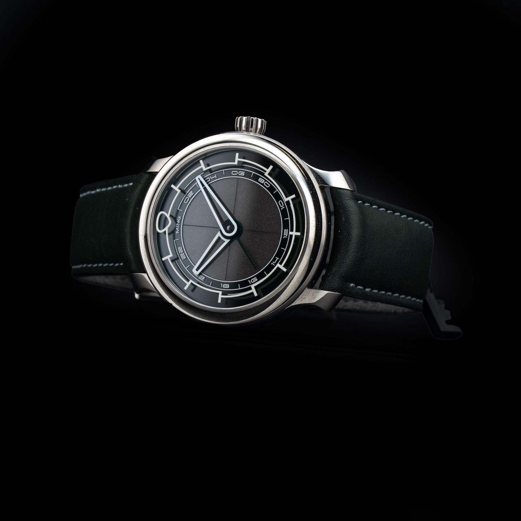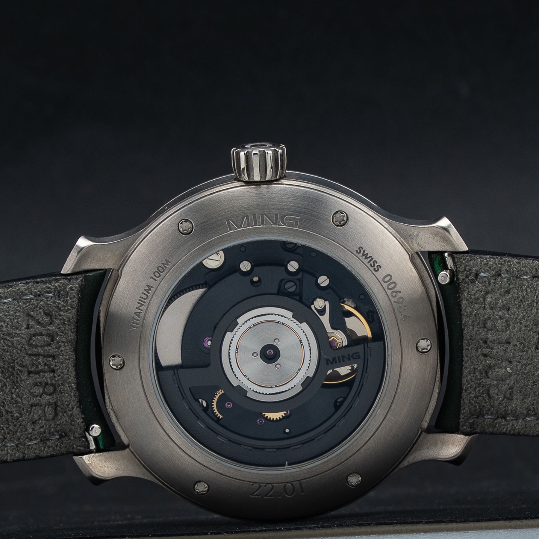 - This timepiece features a 38mm titanium case paired with a high quality leather strap. It showcases a distinctive black dial and is powered by a precise automatic winding movement. The watch is designed with a water resistance of up to 100m.