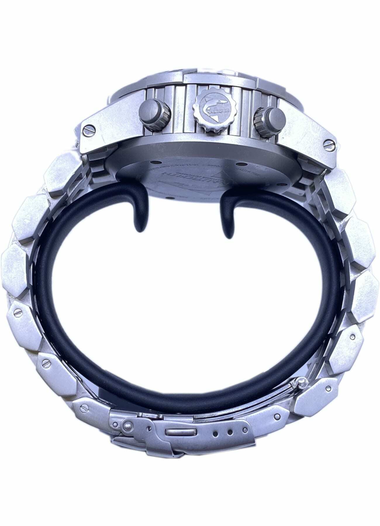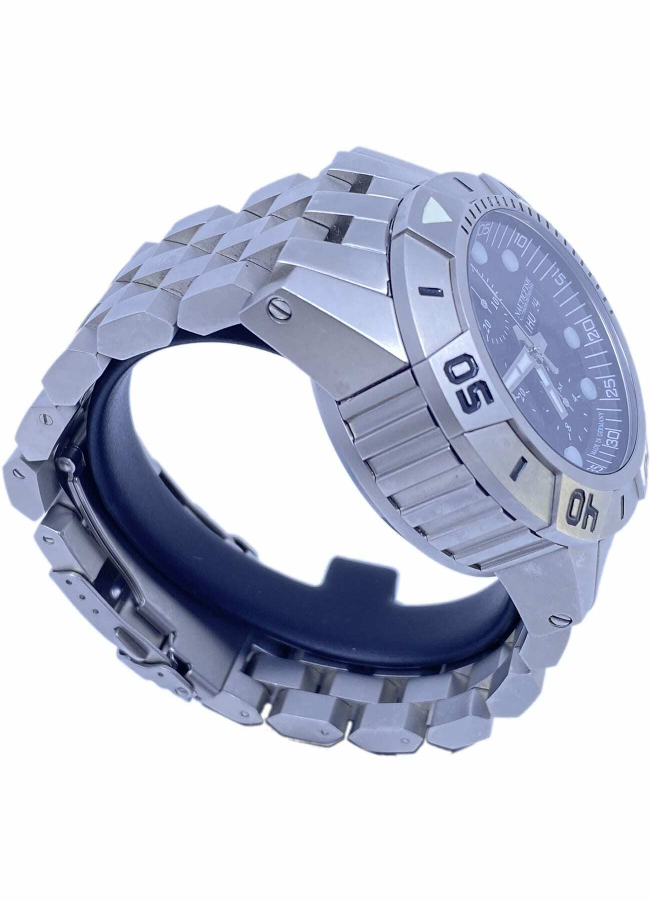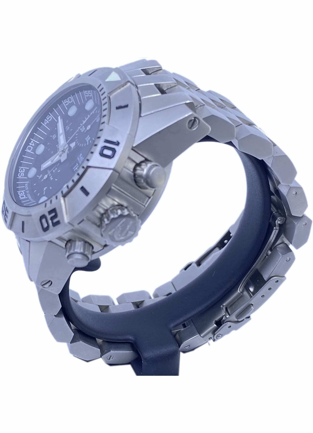 - This timepiece features a 45mm steel case paired with a high quality steel bracelet. It showcases a distinctive black dial and is powered by a precise automatic winding movement. The watch is designed with a water resistance of up to 2000m.