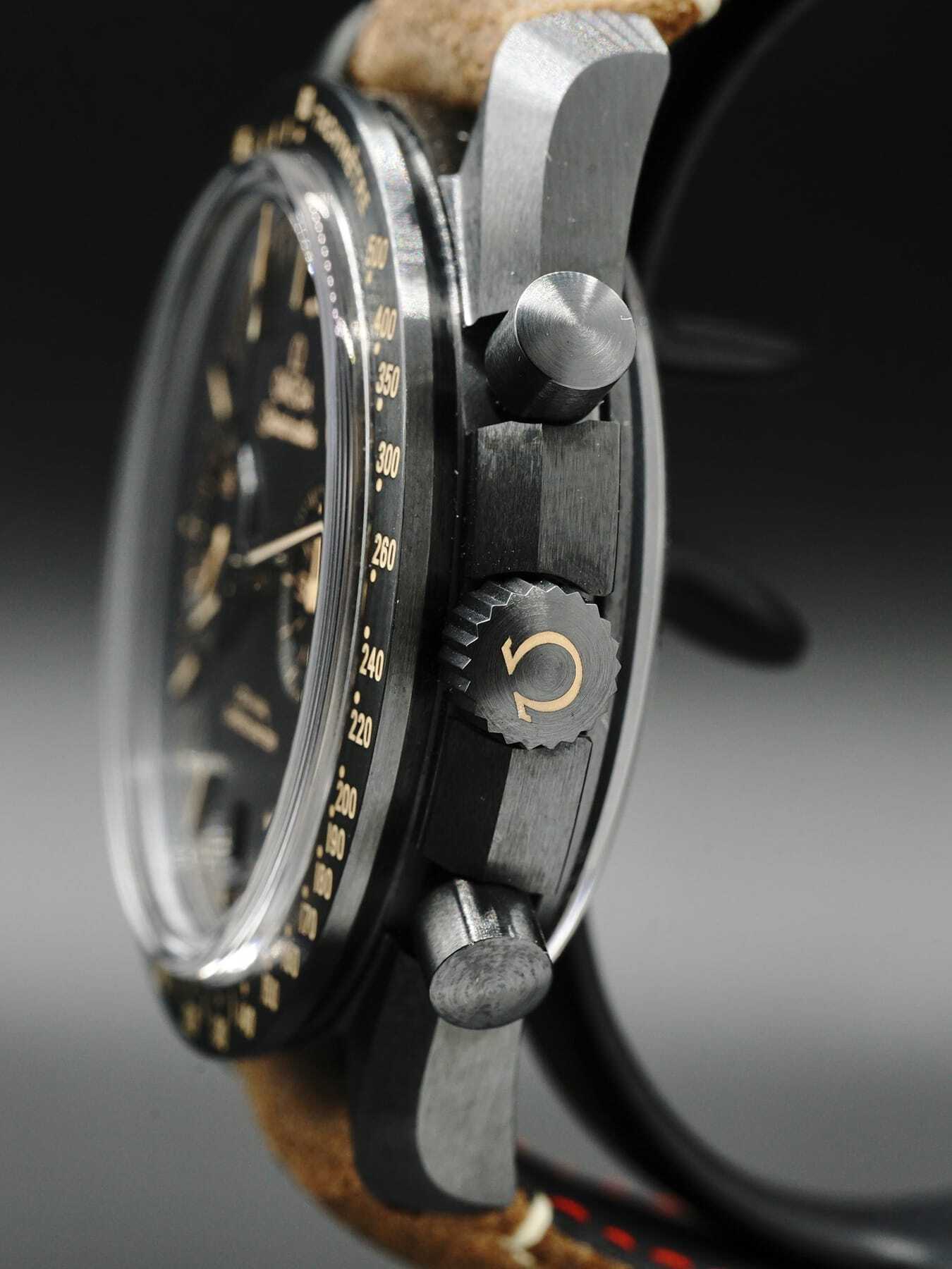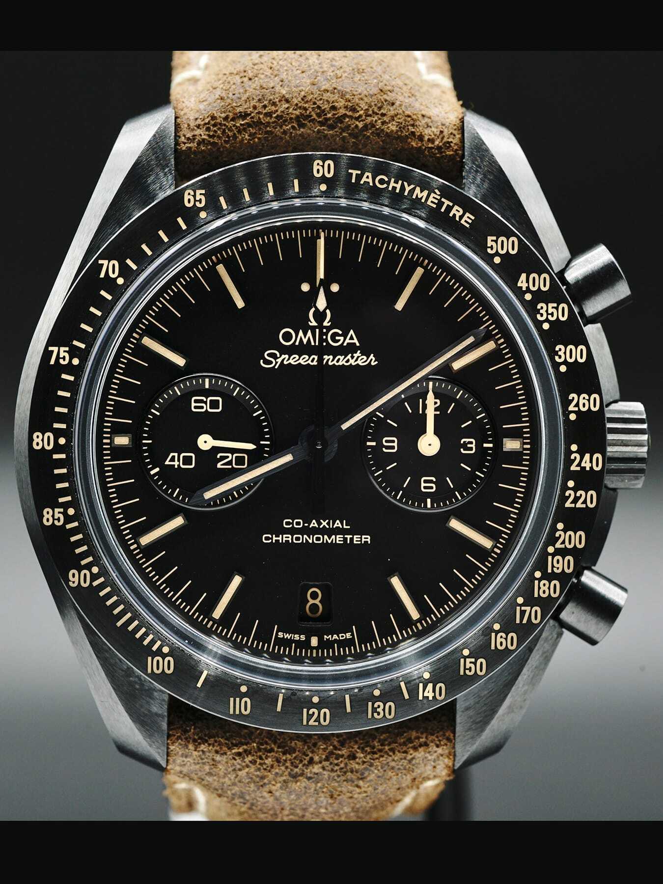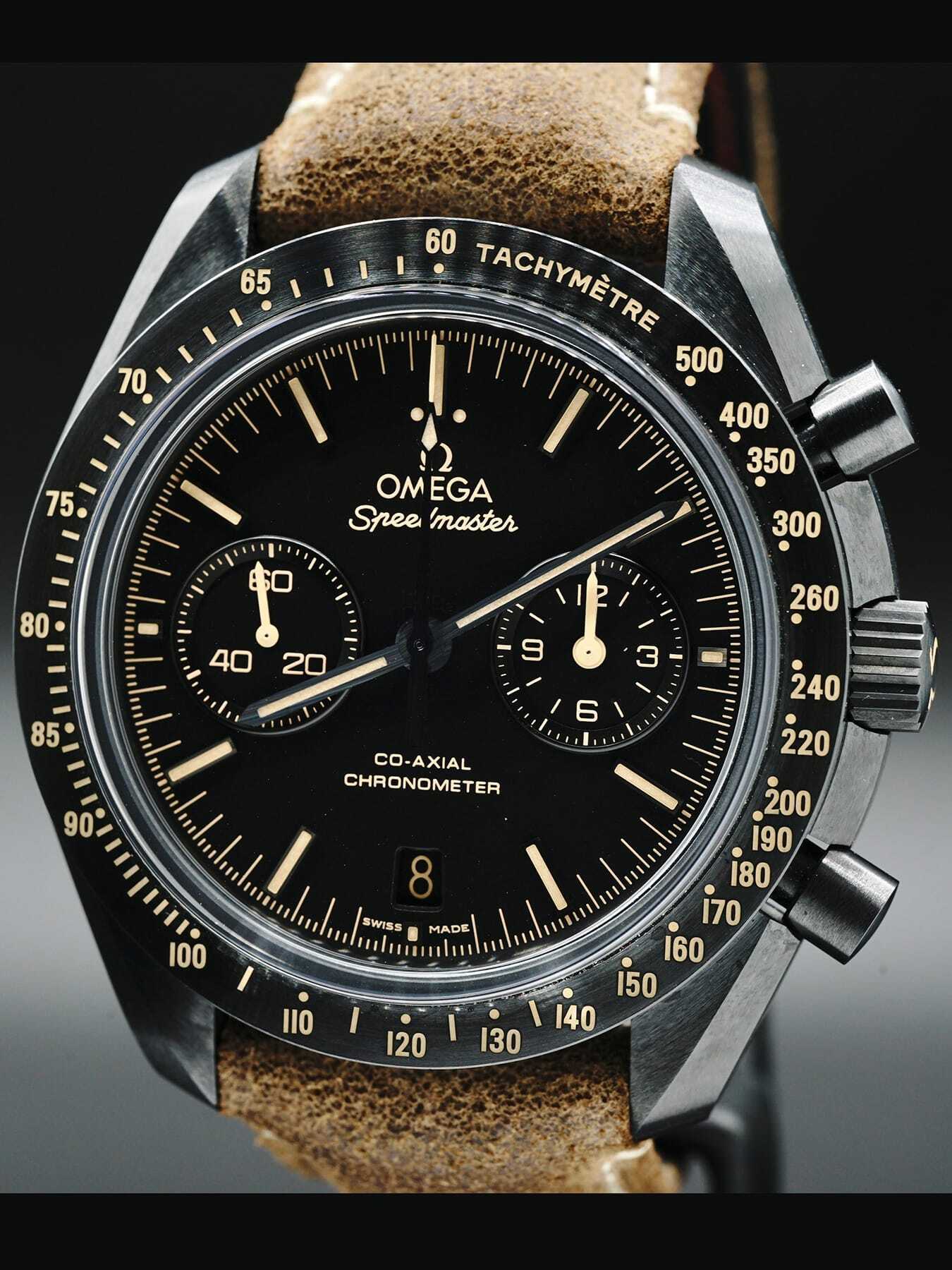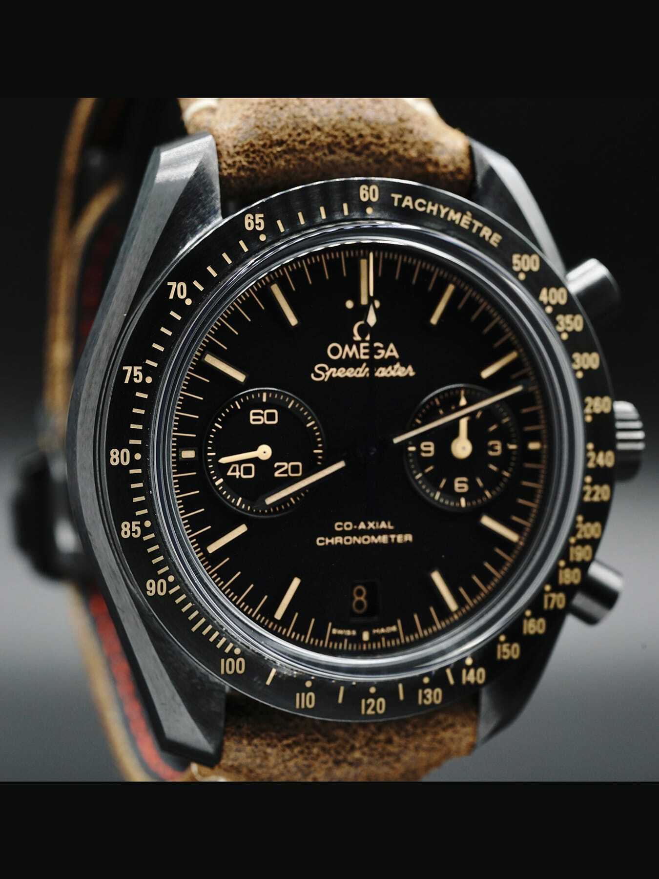 It was the adventures and the accomplishments of the Apollo 8 astronauts that inspired the all-black, ceramic Speedmaster Dark Side of the Moon, but it is the mystique of the Earth’s nightlight and its ever-changing yet constant presence that has spurred the creation of the Speedmaster Dark Side of the Moon "Vintage Black".