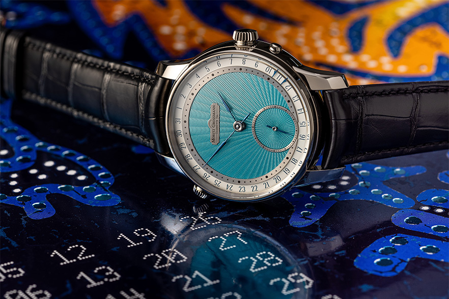 The most eye-catching feature of this watch is its beautiful guilloché dial in turquoise. The special edition, which is limited to a run of 18 pieces, was created in collaboration with exquisite dial manufactory Comblémine by Kari Voutilainen in Switzerland’s Val-de-Travers. The brilliantly iridescent guilloché on the main dial and subsidiary seconds draw the eye and will lend any outfit a special touch – exciting, artistic and very, very cool.