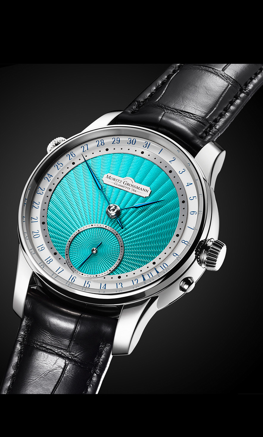 With the new expressive DATE Turquoise variant, the independent manufactory Moritz Grossmann presents its successful date model in a new, fresh and yet sophisticated look.