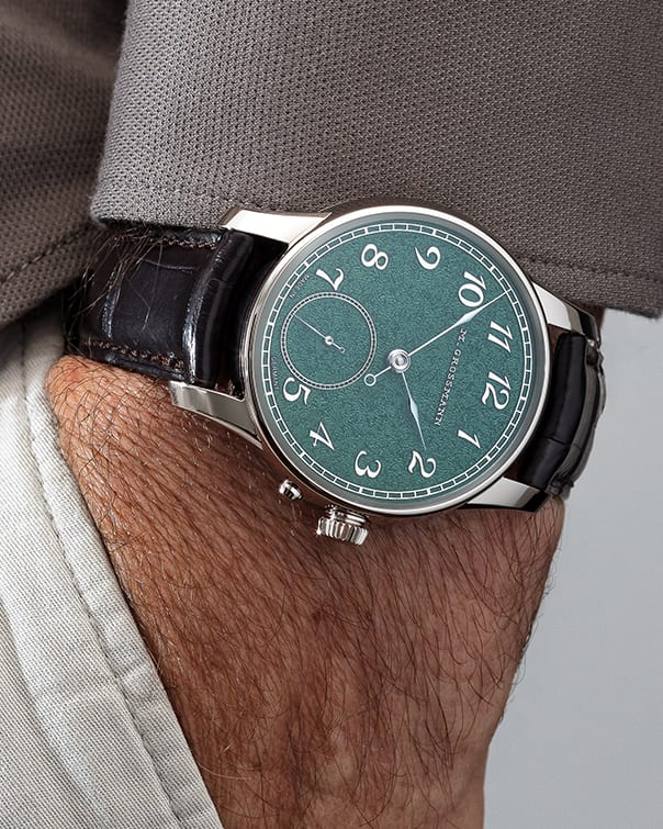 The Moritz Grossmann TREMBLAGE Green White Gold captures the essence of minimalist luxury with a cool-toned twist. Housed in a refined 18k white gold case, this exclusive timepiece is limited to just 8 pieces globally, highlighting Grossmann's dedication to rarity and excellence.