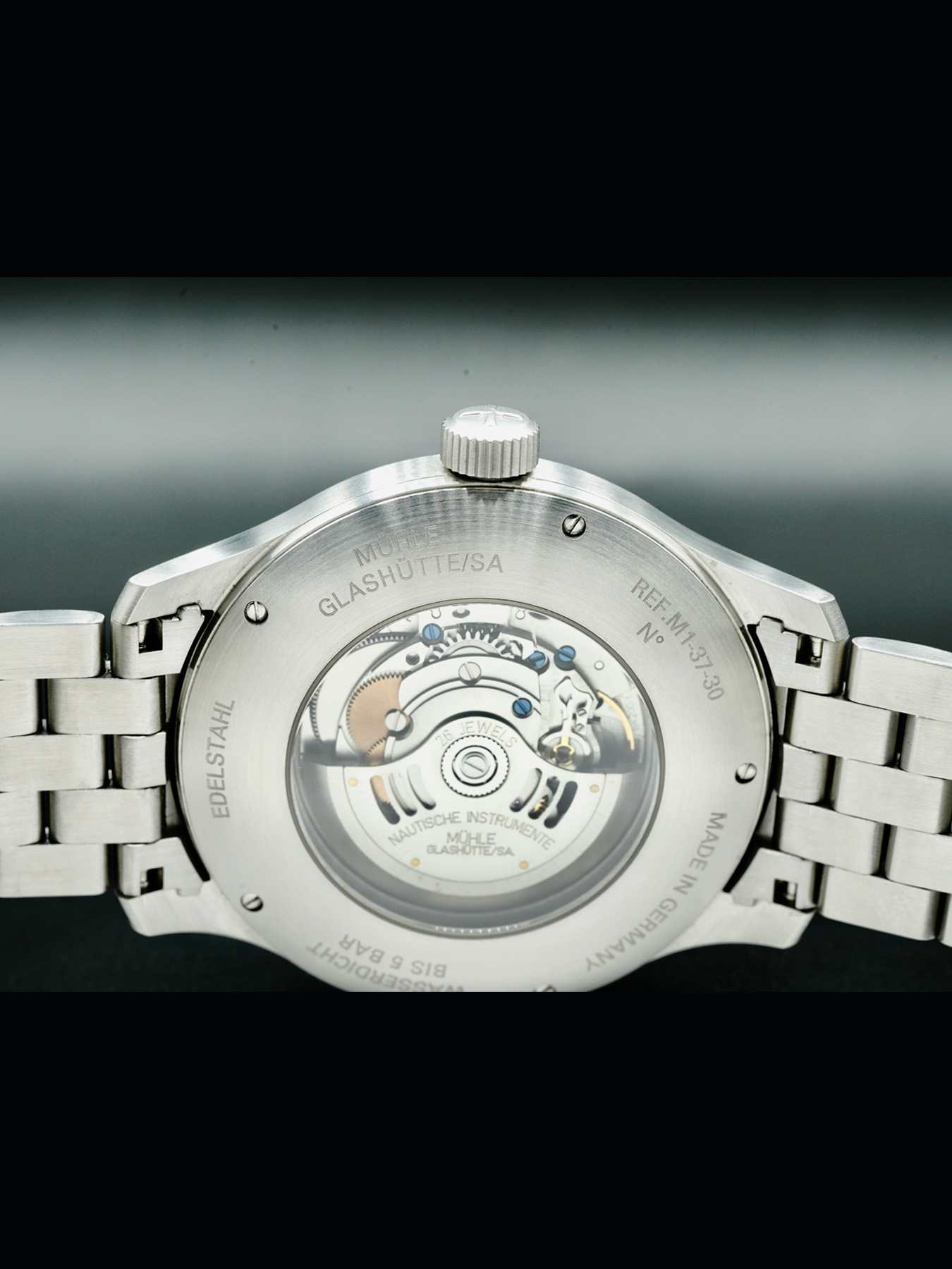 Automatic movement powered by Mühle Glashütte Caliber SW 200-1 with a power reserve of approximately 38 hours. Water resistance up to 100 meters.