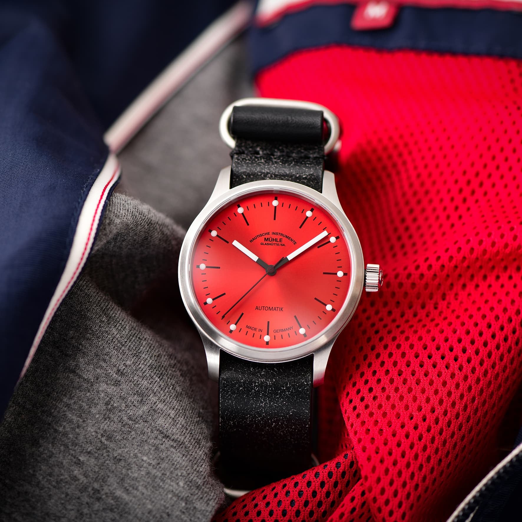 In addition to its existing blue, green and grey designs, this Mühle watch is now also available with a red face. Red is one of those colours that simply never go out of fashion, and in summer 2021, it’s time for red and its various shades to return to the forefront in the world of fashion. To embrace this trend without dressing in red from head to toe, watch-lovers can now add a touch of vibrant red to their wrists with an elegant new accessory.