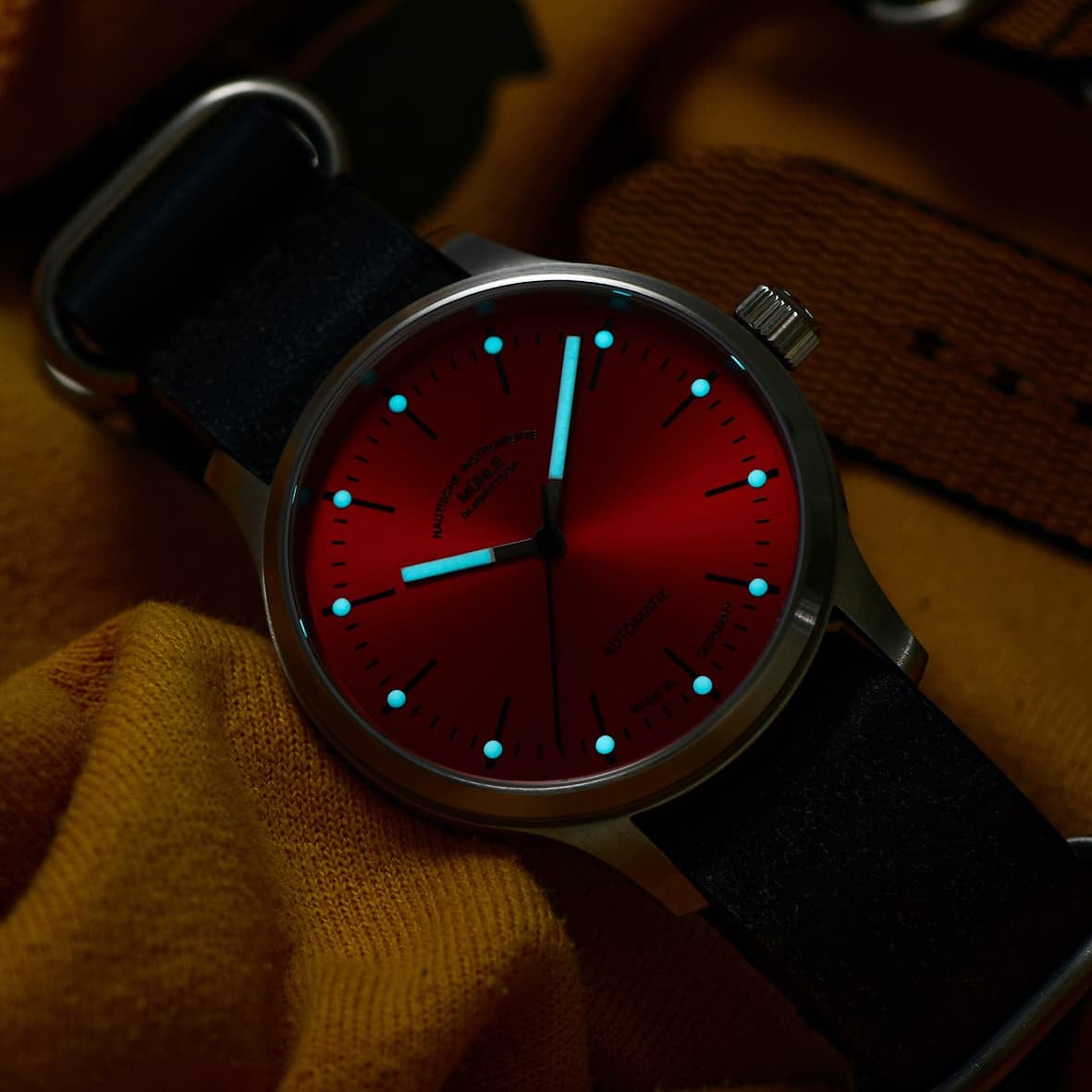 Mühle Glashütte M1-40-78-NB-L Panova Red On Black Leather Nato Strap