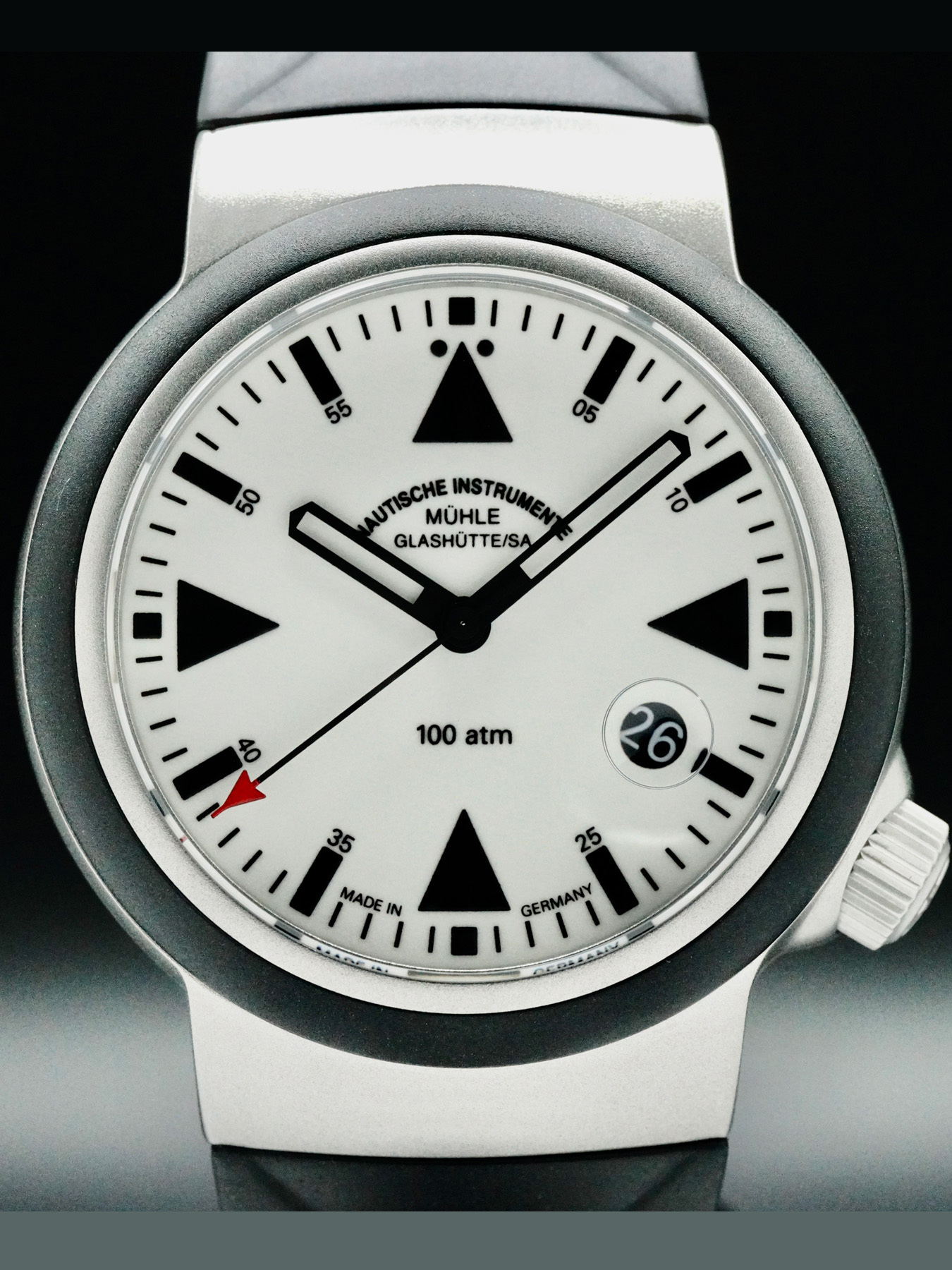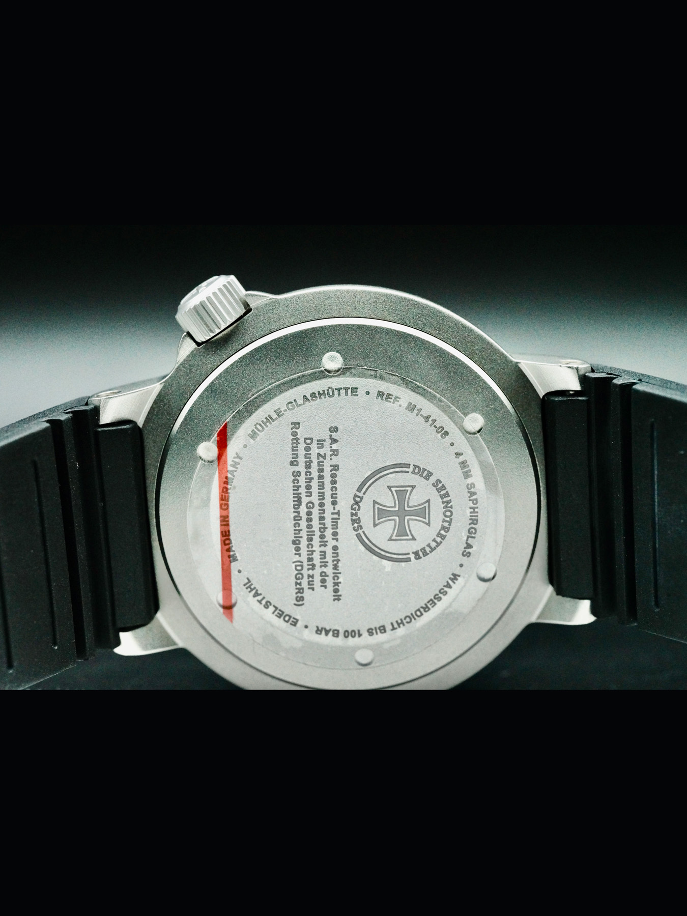 This Muhle Glashutte M1-41-08-KB S.A.R Rescue-Timer Lumen Rubber Strap is in EXCELLENT condition. This watch includes box, instructions blooklet, warranty card dated January 2022. This watch has been fully authenticated and certified by Exquisite Timepieces.
