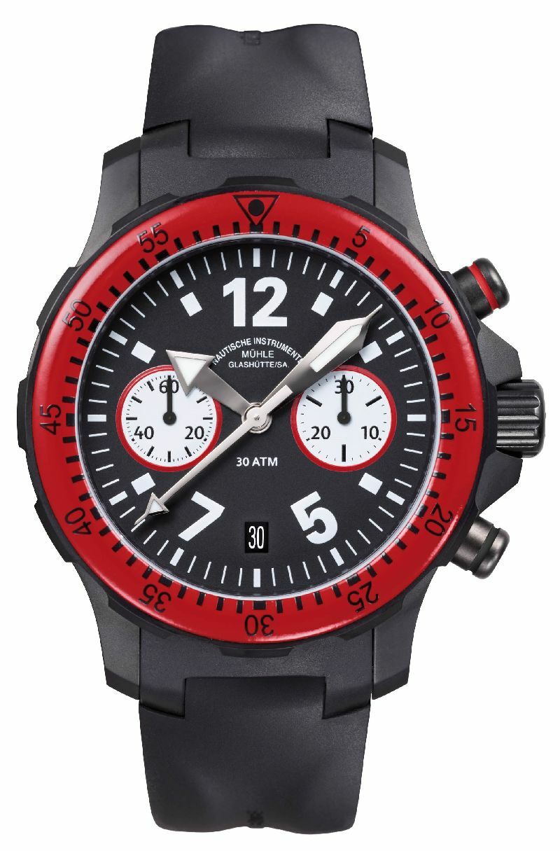 Marinus means -he who lives by the sea- or -of the sea-. Upon hearing the name of this watch, most people therefore naturally think of the sun and the beach and of sailing and surfing. A robust outdoor watch like the Marinus Chronograph, however, must also be able to do its job in snowy or icy conditions, for example when skiing and snowboarding. It therefore comes as no surprise that the Marinus Chronograph has directly qualified for the Fulda Challenge 2012 and is lining up at the start as a limited special edition model. The Fulda Challenge is an Arctic decathlon in northern Canada. The decathlon programme includes events such as SUV races, in which the participants‘ driving skills are put to the test, snowmobile races and a half marathon at temperatures of as low as -40° Celsius. In order to ensure that the Marinus Chronograph can master every challenge, we have given it a solid stainless steel case with an extremely tough and resistant black DLC coating. It also has a 2.5 millimetre thick sapphire crystal face that is surrounded by an equally robust bezel with a red ceramic insert. To top it off, the inside of the watch is fitted with our patented and particularly shockproof woodpecker neck regulation, which ensures that the MU 9408 chronograph mechanism can always be reliably adjusted.