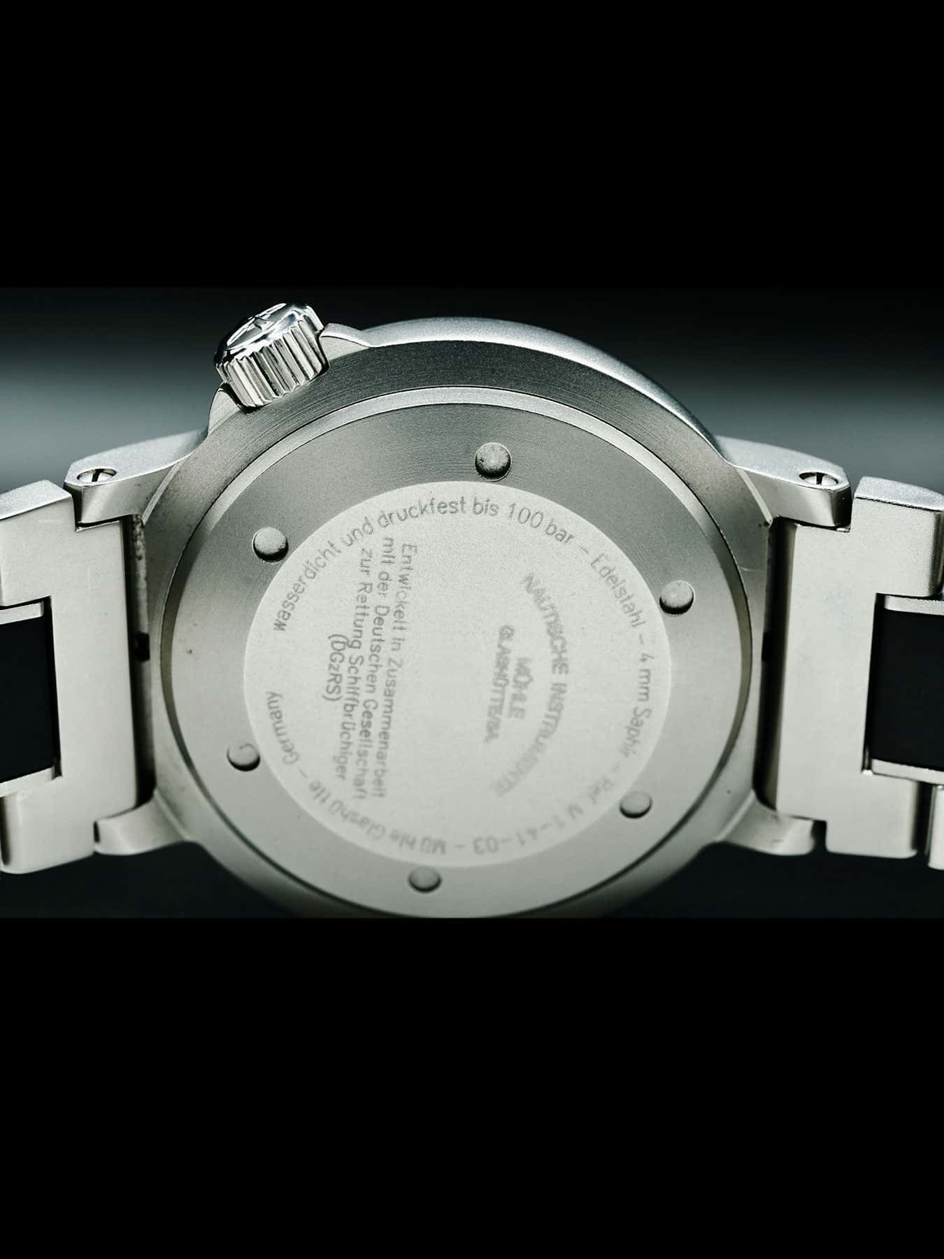 This Mühle Glashütte S.A.R. Rescue Timer M1-41-03-MB is in EXCELLENT condition. It has box and papers. Extra stainless steel bracelet links.