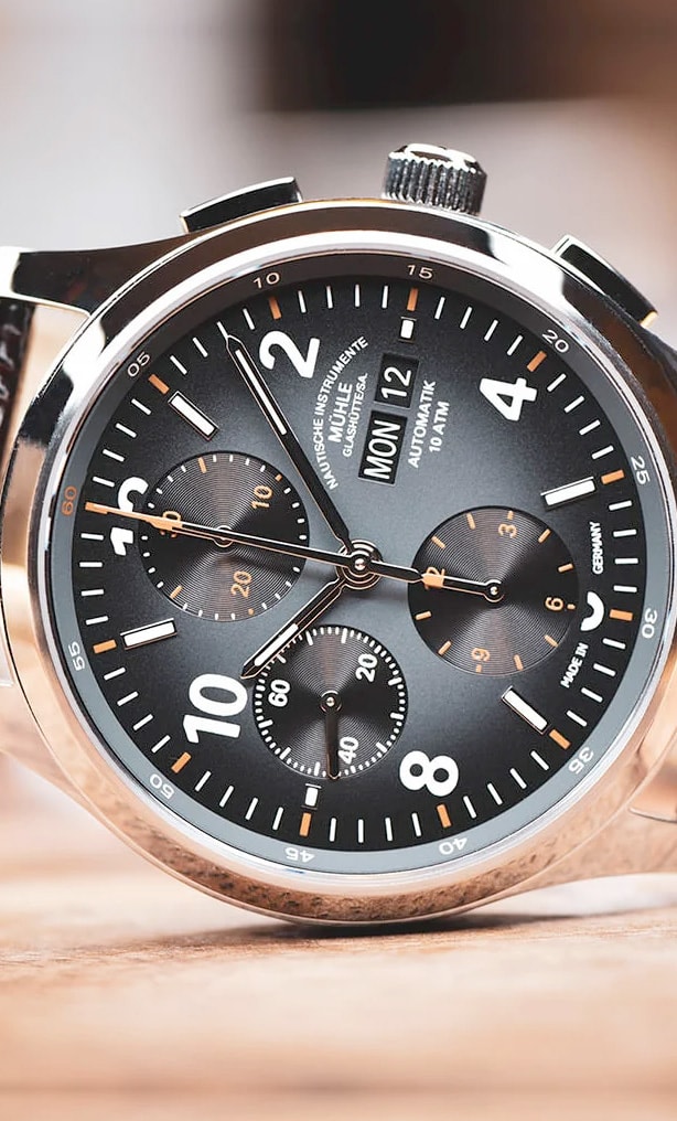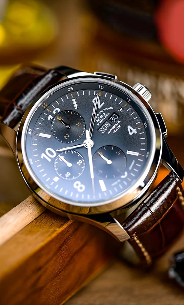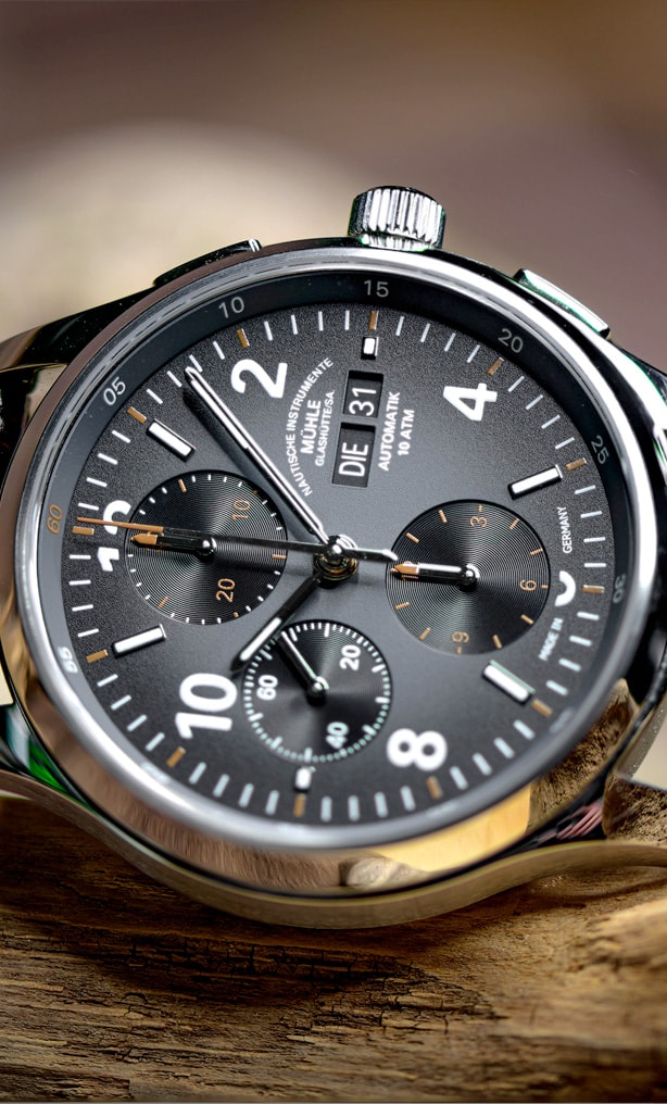 Creativity is in the air! When creative minds come together to discuss the latest designs for a brand-new conference centre at an architect's office, the sporty yet elegant Lunova Chronograph takes centre stage. With its combination of polished and brushed surfaces, the case of the watch exudes pure coolness that perfectly complements its dark black face. The fact that the designs need to be submitted to the customer by Friday means that the architects are bound to a tight and ambitious schedule. Nevertheless, this, of course, is no problem at all thanks to the Lunova Chronograph. While its wearers bring their creativity and motivation to the forefront, their trusty companion, namely the Mühle watch on their wrist, uses its weekday display to remind them at a glance that they still have three whole days to make changes and corrections