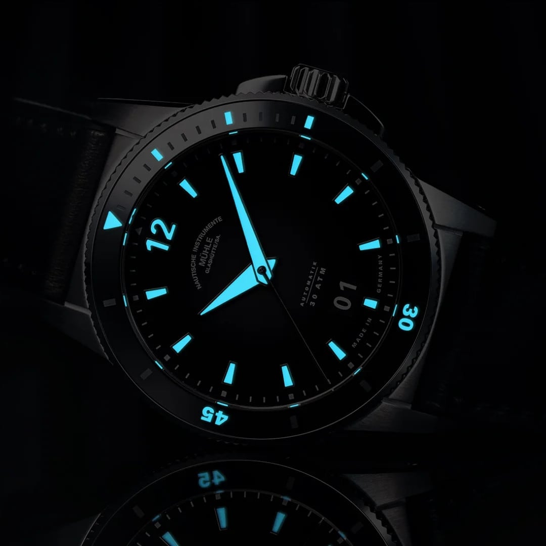 The “12,” the Mühle logo, and the prominent big date at 6 o’clock are positioned in perfect harmony on the dial. This balanced layout gives the watch a sense of calm and clarity – sporty in presence, precise in expression.