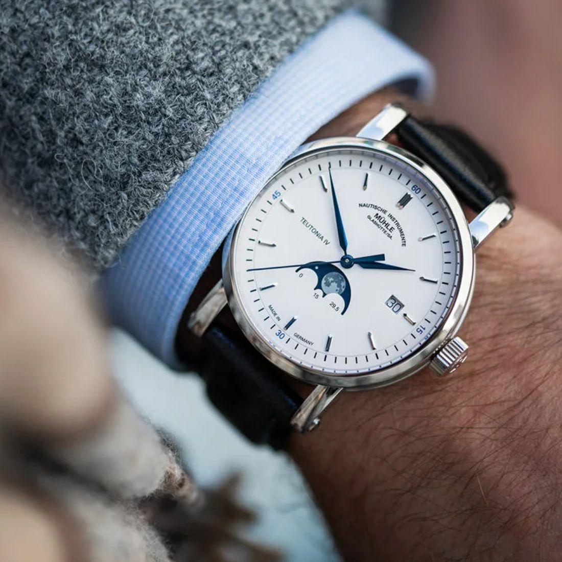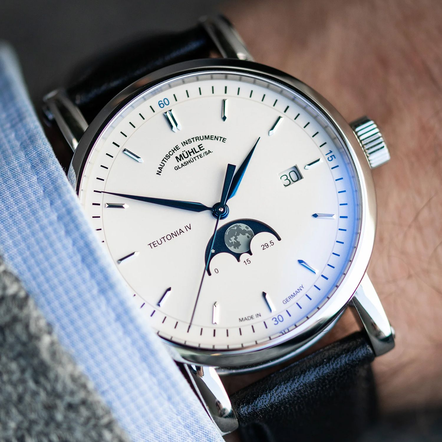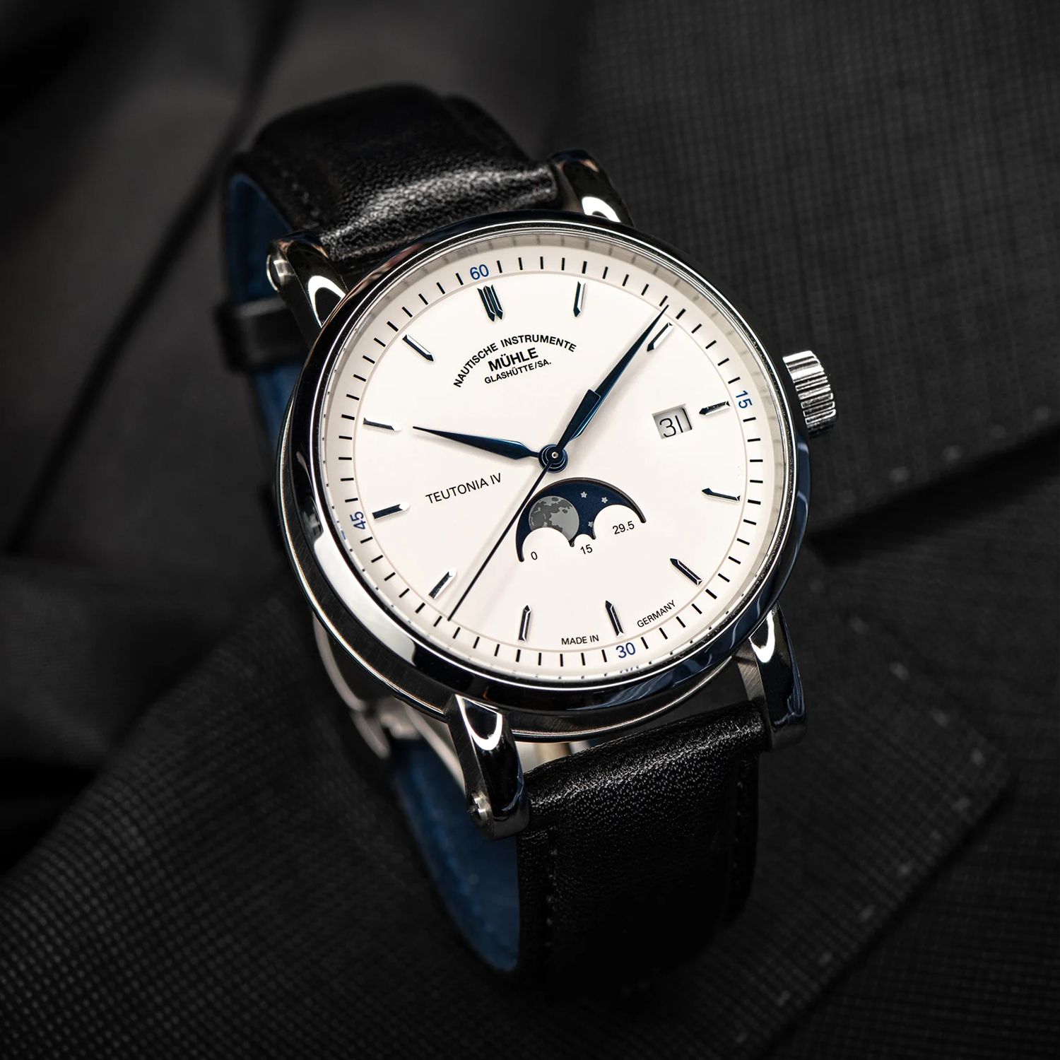 Believe it or not, 50 years have now passed since man first landed on the Moon. Nevertheless, theres still plenty of fascinating news in the present day for fans of all things lunar, especially those who enjoy being different. Did you know, for example, that the Moon has moved a distance of nearly two metres away from the Earth over the past 50 years and will completely leave its orbit at some point in the future? Or that Mühle-Glashütte has now launched a brand-new Teutonia model that captures the Moon for eternity in a special window above the 6 o’clock marking? Underneath this specially formed window on the face of the watch, a lunar disc with a diameter of around ten millimetres rotates, completing a full cycle in 59 days. The disc contains not one, but two images of the Moon and is therefore able to provide a realistic day-by-day insight into its lunation from a new moon to a full moon and back to a new moon over a period of around 29.5 days.