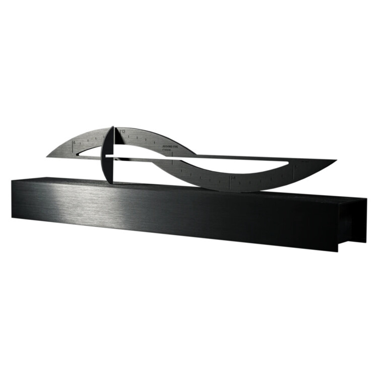 Time indication by linear movement of the marker over 24 hours Point of return/starting of the marker: 6:00 AM. Made of extruded and cut-out aluminum. Setting buttons under the base Size: 19.3 x 3.1 x 5.2 in Weight 4.23 lbs (490 x 80 x 133 mm Weight: 1.92 kg)