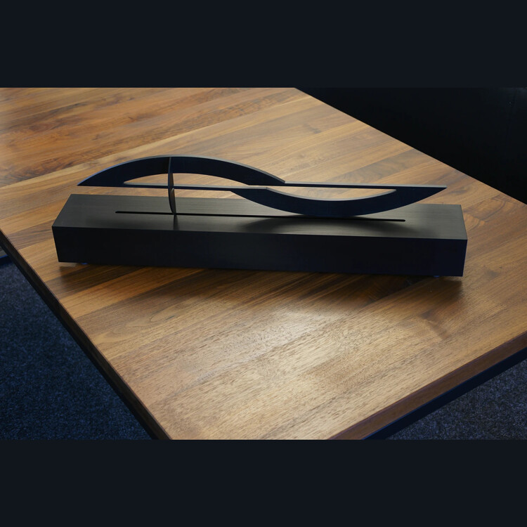 Around Five indicates 24 hours by moving a 'sail' mounted on an invisible linear drive. The 8 seconds of retrograde return of the 'sail' at 6 o’clock is included in the extreme accuracy measurement of -/+ 2 sec/day. Its stepper motor is provided with a sinusoidal current monitoring device and a vibration damping system. 100% noiseless, it is powered by 5 batteries in a stainless steel spring-loaded hatch hidden in the aluminum stand, and offers a 1-year autonomy. Whatever the chosen finishing, the basic material of both the base and this Time Sculpture is mainly aluminum.