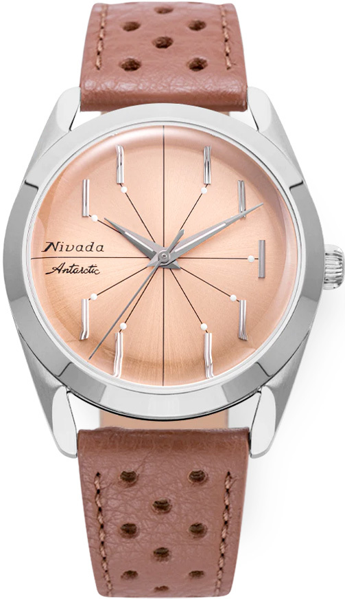 Beneath a domed double-domed sapphire crystal, a superb salmon-hued dial and 8 slim baton indexes applied vertically, connected by 8 lines converging at the center. The term used to designate this particular iteration of the Antarctic is not a cryptic sobriquet coined by collectors: it literally jumps at you the second you lay eyes on the ‘spider’ squarely sitting on the dial. An inspired design, sophisticated, eccentric, graphic, polarizing and eye-catching – that, and the salmon dial, is what makes this reissue so charming. There's nothing like it. The name says it all, no need to draw a picture – the conversation starts all by itself.
