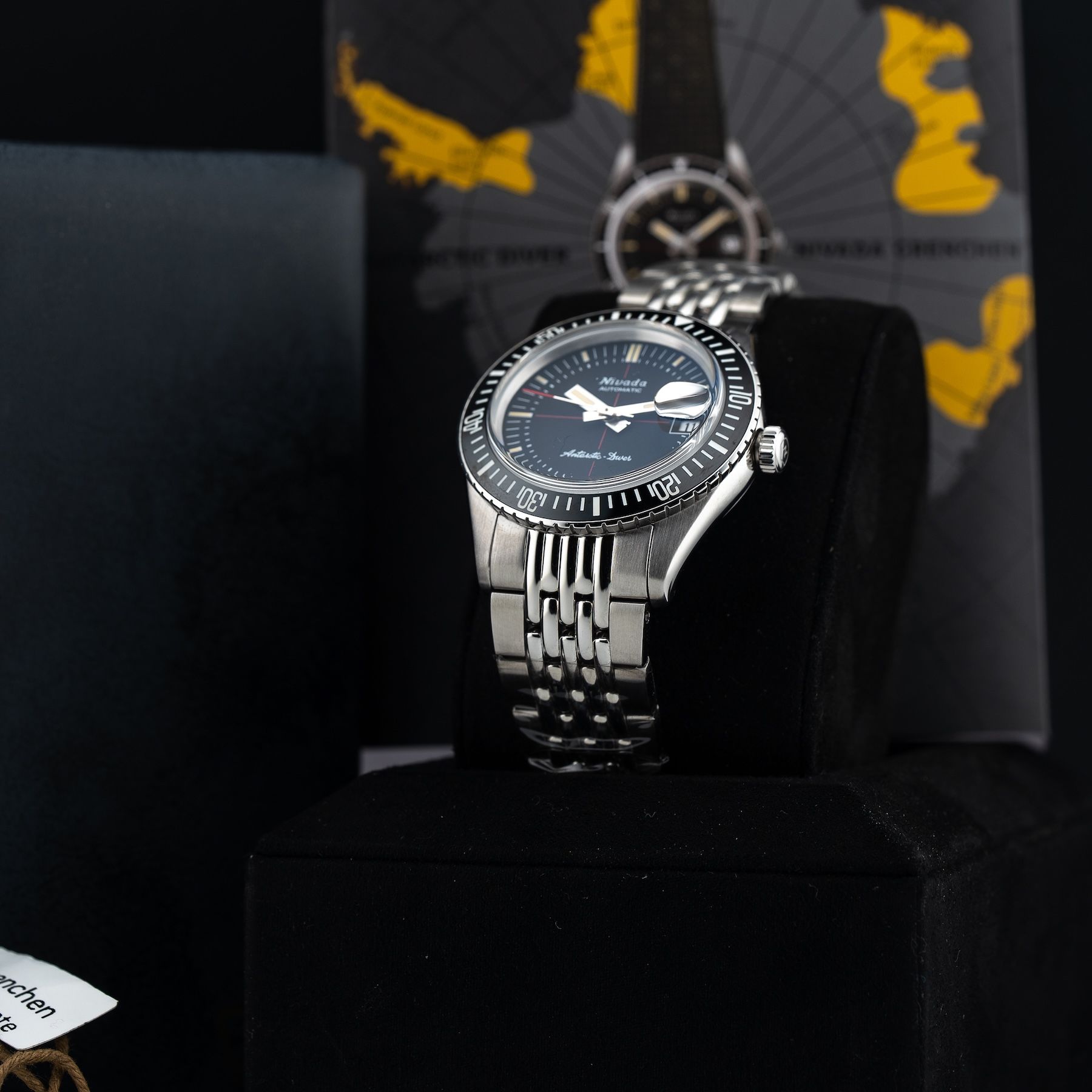 This Nivada Grenchen Antarctic Diver 32038A04 is in GREAT condition. This watch includes its Original Box, Original Papers and Warranty Card Dated 6/25/2025. This watch has been fully authenticated and certified by Exquisite Timepieces. Please note, the photos shown are of the actual watch you will receive.