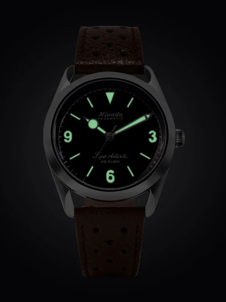This Super Antarctic reissue also started on Instagram, following a post of one of our great followers who had the great idea to share his vintage timepiece with us. We shared it in the stories and got so many messages that we knew it was our mission to make it again with the same original spirit and guts. But with modern standards (Sapphire Glass) and Swiss automatic movement (Soprod P024) with screw-down crown offering a 10 ATM water resistance. The Super Antarctic 3.6.9 is a faithful reedition of the vintage one with two options, a matte black dial or a tropical dial, and a Swiss Super luminova, and for more authenticity, we have added an aging effect to the dial and hand. Diameter is contained to 38 mm and lugs to lugs to 45 mm with a great thickness of 12 mm. You will notice the legendary gold medallion on the caseback.