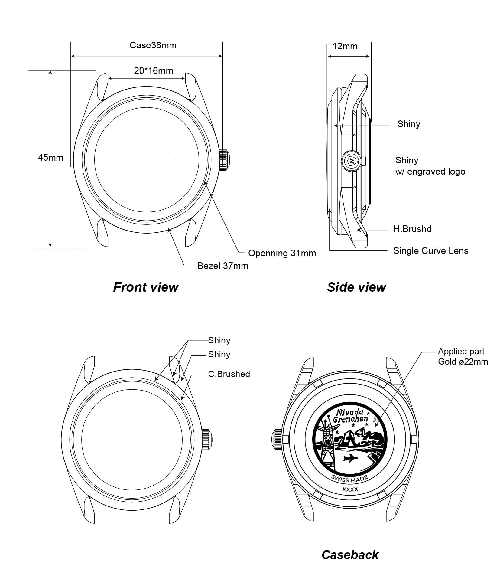 This Super Antarctic reissue also started on Instagram, following a post of one of our great followers who had the great idea to share his vintage timepiece with us. We shared it in the stories and got so many messages that we knew it was our mission to make it again with the same original spirit and guts. But with modern standards (Sapphire Glass) and Swiss automatic movement (Soprod P024) with screw-down crown offering a 10 ATM water resistance. The Super Antarctic 3.6.9 is a faithful reedition of the vintage one with two options, a matte black dial or a tropical dial, and a Swiss Super luminova, and for more authenticity, we have added an aging effect to the dial and hand. Diameter is contained to 38 mm and lugs to lugs to 45 mm with a great thickness of 12 mm. You will notice the legendary gold medallion on the caseback.