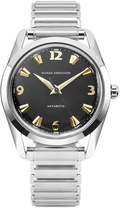 Returning to the basics, embracing all-time favorites, and capturing timeless elegance. As the trend of oversized watches wanes, Nivada Grenchen delves deep into its rich heritage to present a renewed expression of masculine watchmaking. This comes complete with impeccable, artfully crafted finishes, all housed in a 35mm case that epitomizes slender elegance. While the Antarctic’s case and crown are undeniably elegant, it’s the dial that truly stands out as the watch’s centerpiece. Available in three distinct colors — black, white, and eggshell/off-white — the dial boasts applied steel indexes. At the 12, 3, 6, and 9 o’clock positions we have Art Deco-style numerals, while arrowheads (you could say faceted icicles) serve as indexes. Brilliant details, both literally and figuratively. Instead of the conventional luminescent dots, we have curved, slightly orange luminescent arcs painted on the outer edge of the hour markers. The dial proudly bears the ‘Nivada Grenchen’ signature below the 12, with «Antarctic» just above the 6. Beneath it, hugging the outer edge of the minute track, a discreet ‘Swiss’. The steel hands are of the classic dauphine style, with a slim luminescent band at their center. The elongated second hand, crafted in blued steel, adds an extra touch of elegance. On the caseback, an embossed, stylized penguin on a gold medaillon serves as a nod to the watch’s heritage. Altogether, this blend of design elements crafts a remarkable timepiece, with a unique look and feel that takes you back to the 1950s at a flick of the wrist.